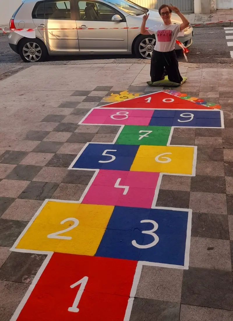 Dopo un mese di instancabile lavoro, anche Parghelia, come diversi borghi della Calabria, ha il suo angolo di spensieratezza e felicità, per grandi e piccini, grazie al murales e al gioco della campana realizzati dall’assessore comunale Rosy Cutuli in piazza Europa. «Ogni volta che passavo dalla piazza – ci ha fatto sapere – mi dispiaceva vederla buia, per via del fitto fogliame degli alberi che non lascia filtrare la luce del sole o dei lampioni, e per nulla sfruttata dalla comunità. Eppure è un luogo di transito molto frequentato, specie per le scuole vicinissime. Così ho dato retta al mio cuore e, spinta anche dal fatto che pure al Central Park di New York c’è una campana disegnata a terra dove tutti giocano, ho iniziato per gioco a darmi da fare. Quel che mi ha colpita subito è stato vedere che i bambini conoscevano questo gioco antico ma, soprattutto, che gli adulti hanno iniziato a tornare bambini giocandoci. Un signore addirittura ha rischiato di rompere il proprio telefono mentre continuava a saltare da una casella all’altra. Mentre realizzavo il murales – sottolinea -, ero costantemente circondata da persone attente a ciò che facevo: da un lato c’erano adulti che avanzavano richieste affinché dipingessi anche il loro animale preferito, dall’altro c’era chi asseriva che quello che stavo realizzando fosse poco educativo con bambini seduti su di una nuvola o a penzoloni sugli alberi come le scimmie; dall’altro ancora c’erano i bambini, che con la loro immensa fantasia e bontà d’animo hanno riconosciuto il personaggio dello Stregatto, apprezzando persino che la bimba dipinta uscisse dal solito stereotipo di fanciulla con i capelli biondi e che avesse una chioma nera».