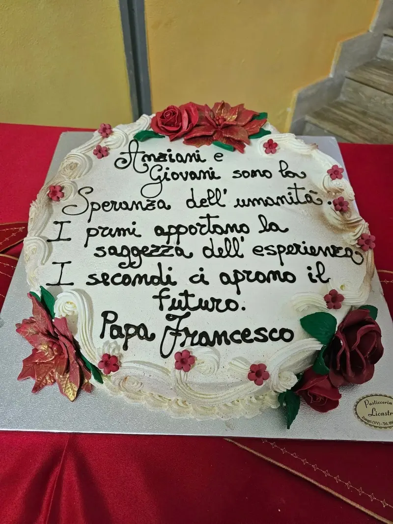 Per il settimo anno consecutivo la comunità di Zungri si è stretta attorno al perno della società, gli anziani, per il consueto “Pranzo di Natale” svoltosi presso i locali dell’ex scuola materna ora divenuto “Centro farfalla”. «Da quando la chiesa di San Nicola è stata dichiarata inagibile dai Vigili del fuoco, per via di alcuni calcinacci caduti durante le funzioni religiose che hanno sfiorato i presenti – ci ha fatto sapere il parroco di Zungri don Giuseppe Larosa -, il Comune ci ha concesso a titolo gratuito questi locali dove abbiamo trasferito tutte le attività parrocchiali, incluso il catechismo». La giornata tanto attesa, «è iniziata di buon mattino con la funzione religiosa a loro dedicata celebrata alle ore 8:00 nel santuario diocesano “Sancta Maria ad Nives”. Prima del momento conviviale – ha aggiunto il presule -, c’è stato un comune momento di raccoglimento e preghiera all’interno del “Centro farfalla” tra gli anziani presenti, circa una cinquantina, ed i ragazzi dell’oratorio che, per l’evento, sono stati magistralmente coadiuvati dalle due responsabili Emanuela Fusca e Francesca Spinoso». Il pranzo loro servito è stato realizzato «con tanto amore ed estremo garbo da tutti i familiari dei ragazzi dell’oratorio i quali hanno sapientemente preparato tutto, dall’antipasto fino alla splendida torta che recava un importante messaggio di Papa Francesco, dedicato proprio ai nostri amati anziani».