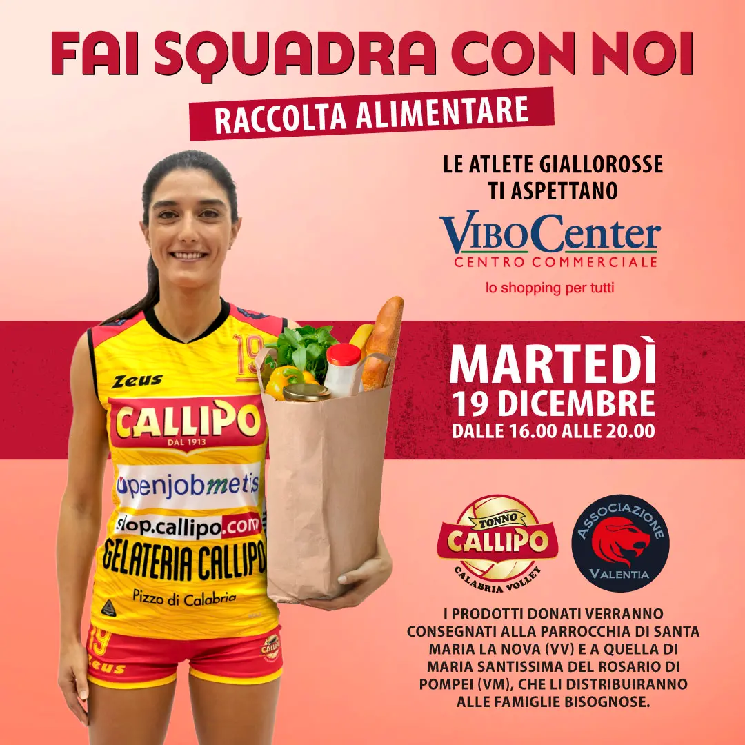 “Natale tempo di pace, serenità e bontà seppur in giro per il mondo non manchino conflitti e contrasti. Gesù disse in modo eloquente ai discepoli: “Quando date”, e non “se date”. In casa Tonno Callipo non si interrompe la piacevole tradizione che vuole il sodalizio giallorosso sempre impegnato anche nel sociale con varie iniziative benefiche. In particolare, – fanno sapere dalla società – in questo periodo natalizio, la società del presidente Pippo Callipo conferma e manifesta sensibilità e solidarietà per i più bisognosi”. Così anche quest’anno, per la terza edizione consecutiva, va in scena in collaborazione con l’Associazione Valentia di Anthony Lo Bianco, la Raccolta alimentare. Giocatrici e componenti dello staff giallorosso femminile della Tonno Callipo si ritroveranno martedì 19 dicembre dalle ore 16.00 alle ore 20.00 presso il Vibo Center di Vibo Valentia. Qui faranno appello alla solidarietà di tutti, invitando ad acquistare alimenti non deperibili da donare a persone in difficoltà. “Grande entusiasmo e consapevolezza da parte della Tonno Callipo del tecnico Diego Boschini, per un’iniziativa ormai diventata una piacevole consuetudine ogni anno. In quel pomeriggio le eccezionali ragazze giallorosse che stanno dominando la Serie C femminile con dieci vittorie senza cedere neanche un set, si ritroveranno al Centro Commerciale vibonese e, tra una foto con gli avventori, un autografo e soprattutto tanta passione e sensibilità, saranno parte attiva di questa raccolta, contribuendo a donare non soltanto un sorriso a chi è meno fortunato. Quindi ad iniziare da Denise Vinci capitano della squadra femminile, continuando con le brasiliane Suelen e Macedo e tutte le altre giocatrici saranno pronte e attive, anche fuori dal campo, a regalare un momento spensierato a chi lo vorrà, intrattenendosi e magari anche scambiando anche qualche impressione sul torneo di Serie B e di Serie C, e la contestuale raccolta di generi alimentari. La Tonno Callipo ha fatto dell’impegno in questo tipo iniziative il proprio stile societario. Non solo sempre toni pacati per le vicende agonistiche, quanto anche – ed è questo il tratto distintivo di tutto l’entourage caro al presidente Callipo – sensibilità e vicinanza fuori dal campo verso la comunità in cui si opera. Tanti i passi e gesti concreti della società giallorossa in trent’anni di onorata attività pallavolistica verso il proprio territorio, anche provinciale. Così dalle sponsorizzazioni per altri sport il passo è breve verso varie partnership: come non citare quelle con l’Asd Volley Academy di Cerzeto; con la società Sportiva Filadelfia Cup Volley, ed ancora le emozioni uniche da togliere il fiato per il calendario con le persone down, in collaborazione con la sezione vibonese di Aipd Associazione italiana persone down”, hanno concluso dalla Tonno Callipo.