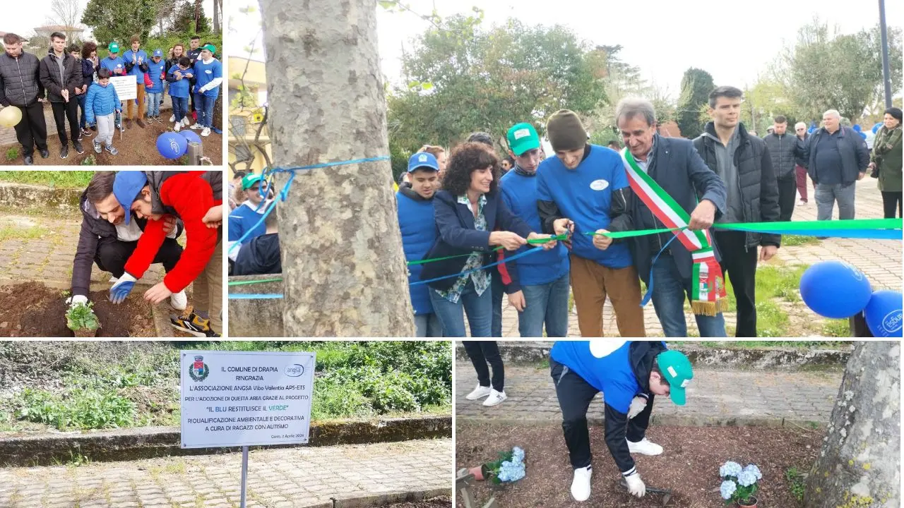 Nel frattempo, il sodalizio sta portando avanti la sua attività sul territorio vibonese. Bilancio positivo per il progetto “Il blu restituisce il verde”, che ha visto impegnati giovani apprendisti giardinieri nella riqualificazione e l’abbellimento di un’area verde a Caria di Drapia, affiancarti da educatori e volontari: «Attraverso piccole mansioni, i ragazzi hanno dimostrato che anche loro possono e devono dare un contributo alla comunità in cui vivono. Il progetto, pur se può apparire a carattere simbolico, segna una tappa importante su come poter inserire nel mondo del lavoro dei giovani autistici iniziando con piccole attività di inclusione lavorativa. Dover mantenere pulita e ordinata l’area verde riqualificandola per almeno per un anno, come stabilito nella determina comunale – rimarca la presidente Naso – restituisce dignità e accettazione alla responsabilità e alle competenze acquisiti come cittadini di serie “A”. L’impegno assunto é un input al dover fare, a voler partecipare, ad esserci ogni giorno, perché l’autismo si vive ogni giorno dalle famiglie e dalla comunità includente». Quello nel piccolo centro del Vibonese, è stato un momento di festa indimenticabile per tutti i partecipanti al progetto. Piazza Mazzitelli si è riempita dei sorrisi dei ragazzi e delle loro famiglie. Emozionante, il taglio del nastro insieme al sindaco, Alessandro Porcelli. Un momento partecipato, unico, alla presenza anche del portavoce del Forum terzo Settore di Vibo Valentia, Pino Conocchiella, dell’Associazione “Mamma Margherita OdV”, dell’Associazione culturale “Cheria”, della Pro loco Drapia, del Servizio civile, della comunità e dei bambini del progetto “Protagonisti”.