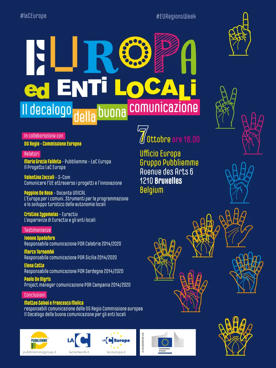 Il Gruppo Pubbliemme, leader nazionale nei settori outdoor, comunicazione e media ha organizzato a Bruxelles la conferenza dal titolo “Europa ed enti locali, il decalogo della buona comunicazione” il 7 ottobre prossimo, in collaborazione con la direzione generale Politica regionale e urbana della Commissione Europea.