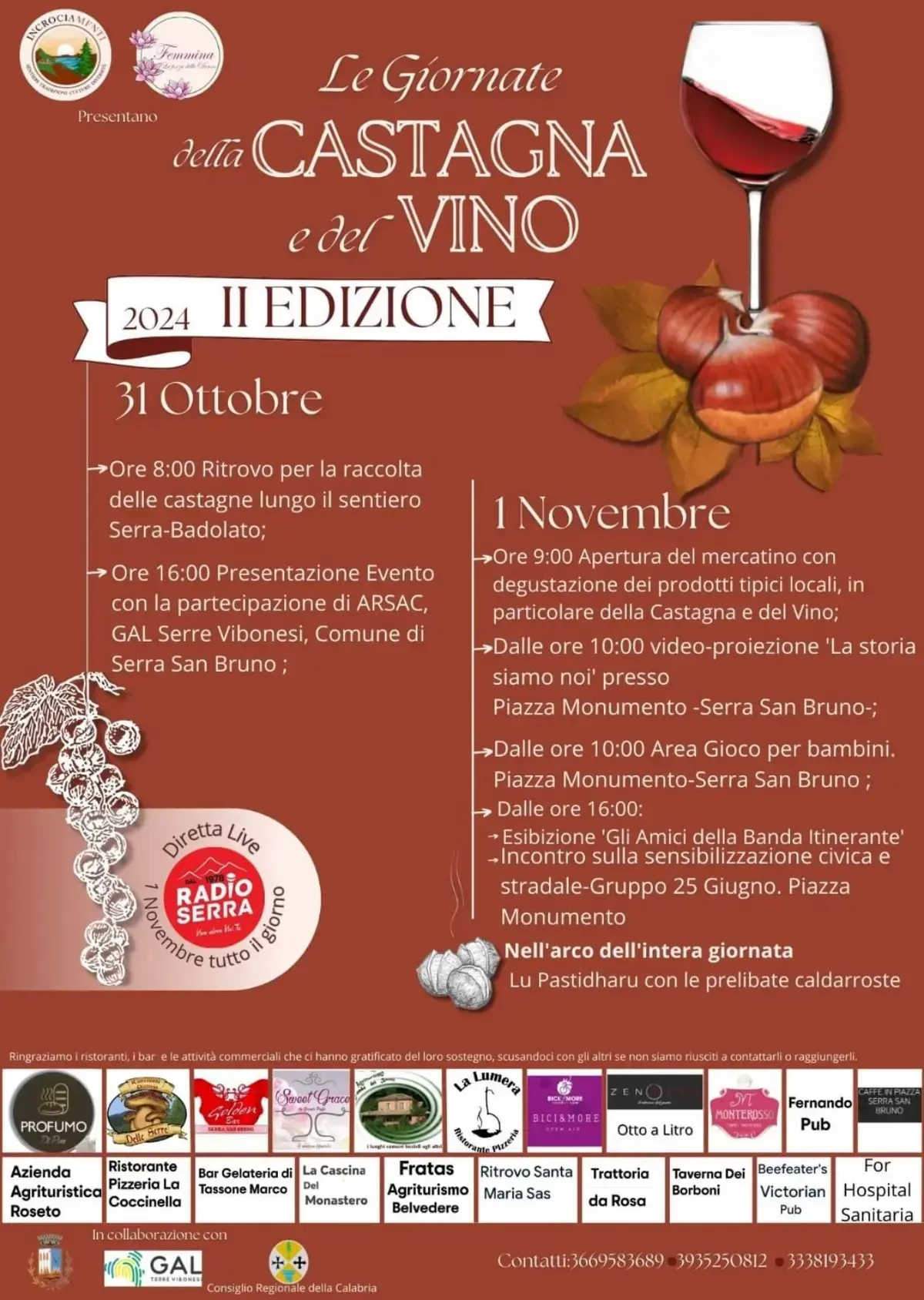 Fervono i preparativi a Serra San Bruno in vista della seconda edizione delle Giornate della castagna e del vino. La manifestazione all’insegna della tradizione, della cultura, dello spettacolo e dell’enogastronomia è in programma nei giorni 31 ottobre e 1 novembre. In questo senso le associazioni Incrociamenti e Femmina sono attualmente impegnate nella cura degli ultimi dettagli. L’evento stagionale è stato, di fatto, ormai istituzionalizzato. La mattinata della prima delle due giornate sarà dedicata all’escursione per la raccolta delle castagne, “gita fuori porta” che, partendo alle 8 da piazza Monumento, si svilupperà lungo il sentiero Serra-Badolato. Nel pomeriggio, alle 16, è previsto l’incontro di presentazione della rassegna all’interno di Sala Chimirri, in collaborazione con i divulgatori e gli esperti dell’Arsac, del Gal Serre Vibonesi, e dell’Ordine degli Agronomi. Il giorno dopo, dalle 9, in scena entrerà il Mercatino con l’esposizione e la degustazione dei prodotti tipici della zona. In questo caso, a farla da padrone sarà il grande braciere (pastidharu) da cui verranno sfornate le prelibate caldarroste, derivate dalle castagne raccolte nei boschi della zona e dal lavoro dei vari produttori locali. Per tutto il corso della giornata sarà attiva la postazione in filodiffusione di Radio Serra. Previsti anche l’allestimento di un’area giochi per bambini e la partecipazione del Complesso bandistico Città di Serra San Bruno, in attività da ben trent’anni. Teatro dell’evento sarà tutta l’area urbana che collega piazza Azzaria Tedeschi a piazza San Giovanni. Le Giornate della castagna e del vino godranno del patrocinio della Presidenza del Consiglio regionale della Calabria, del Comune di Serra San Bruno, del Gal Serre Vibonesi, nonché della collaborazione di numerose associazioni. Tra queste, il gruppo 25 Giugno, che nell’occasione proporrà un dibattito e una performance sul tema dell’educazione stradale, a prosieguo di un percorso educativo che vede come protagonisti gli alunni delle scuole primarie.