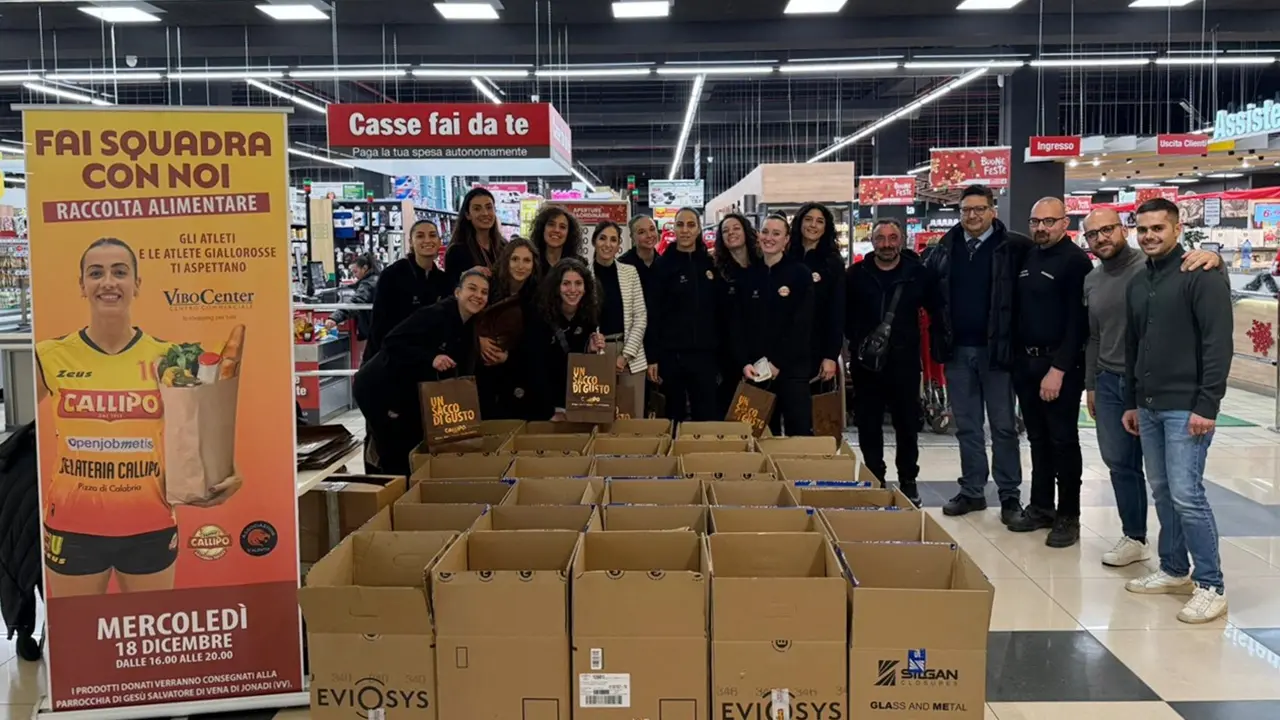 Anche quest’anno, per la quarta volta consecutiva, nel periodo natalizio la Tonno Callipo Volley assieme ad Associazione Valentia hanno dato vita alla Raccolta alimentare. Con lo slogan “Fai squadra con noi”, i volontari del sodalizio guidato da Anthony Lo Bianco e gli atleti e le atlete giallorosse assieme allo staff dirigenziale hanno presenziato al Vibo Center per la raccolta di generi alimentari di prima necessità, che verranno ora donati alla Parrocchia di Gesù Salvatore di Vena di Jonadi. Così Denise Vinci e le sue compagne da una parte e Luciano Mille con la squadra maschile dall’altra, coi rispettivi staff tecnici, anche quest’anno nell’ottica di un Natale solidale, hanno messo in atto un pensiero gentile per i più bisognosi attraverso un piccolo gesto, per fare del bene insieme ai clienti del Centro commerciale.