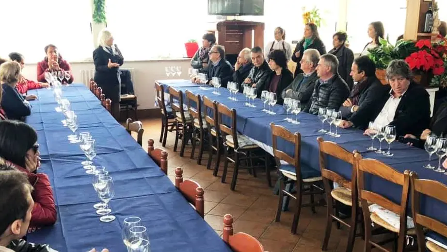Ribadire l’intento di vivere in modo pieno e nel segno dell’inclusione e della condivisione, per crescere culturalmente ed arricchire le esperienze personali e di gruppo. Questo l’obiettivo prioritario della manifestazione “I profumi del vino”, organizzata dall’Unione italiana dei ciechi e degli ipovedenti di Vibo Valentia e dall’Associazione italiana sommelier Calabria, con il supporto dell’Istituto Alberghiero e dell’Associazione Cocktails and dreams. La sala del ristorante “Il Gazebo” di San Costantino Calabro ha accolto una cinquantina di soci, familiari ed amici dell’Uici, tra cui esperti e giornalisti, nonché il sindaco De Rito ed il parroco del luogo, tutti fortemente interessati a condividere una giornata dimostratasi, nei fatti, davvero speciale. Una poesia dialettale ha accostato le quattro stagioni a quelle della vita contadina, che dal vino ha tratto e trae sostentamento, aprendo l’iniziativa in modo diretto ed artistico, mentre il pittore e scultore sancostantinese Tonino Denami iniziava la realizzazione di un quadro tematico dipinto proprio col vino. Maurizio Bonanno, moderatore della serata, ha scandito gli interventi. Dal presidente Uici Rocco Deluca con la sua esperienza di figlio della civiltà rurale, allo splendido viaggio esperienziale narrato dalla scrittrice Teresa Pugliese, la quale si è soffermata sul tema “Il vino nella storia, nella cultura, nelle tradizioni e nella gastronomia della Calabria” ed ha raccontato le “tappe della memoria” (partendo dai greci e proseguendo con i romani) che hanno condotto la Calabria all’attuale posizione di privilegio culturale tra le regioni italiane rispetto alle tradizioni legate al nettare degli dei.