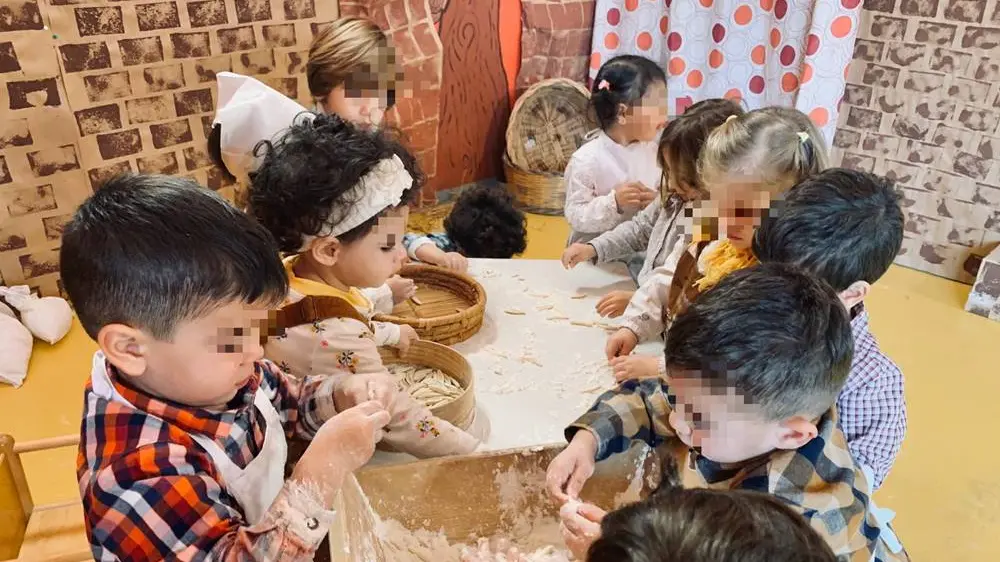 In una sezione è stata realizzata la Natività, con i suoi personaggi principali, Gesù bambino, Maria, Giuseppe, mentre nelle altre sono stati ricreati scorci di vita quotidiana di altri tempi, sconosciuta ai bambini, con ambientazioni e abbigliamento rurale che ha visto la presenza di pastori, pecorelle e di figuranti gli antichi mestieri quali la lavandaia, il fruttivendolo, la massaia e il fornaio. «In un clima di festa i piccoli attori hanno egregiamente messo in scena, ciascuno il proprio personaggio, in casette di legno con fiocchi di cotone, caminetti, bracieri, zampogne di cartone e tanti altri oggetti, mentre una lucente cometa, accompagnata dalle dolci melodie natalizie, indicava la grotta di Betlemme e la nascita del Bambinello Gesù. Forti emozioni e tanta gioia – conclude la cooperativa – sono stati manifesti negli occhi pieni di commozione e tenerezza dei presenti, in particolar dei genitori e dei nonni». Al termine della Natività la festa è continuata con il tradizionale arrivo di Babbo Natale che ha ancor di più allietato i bambini.