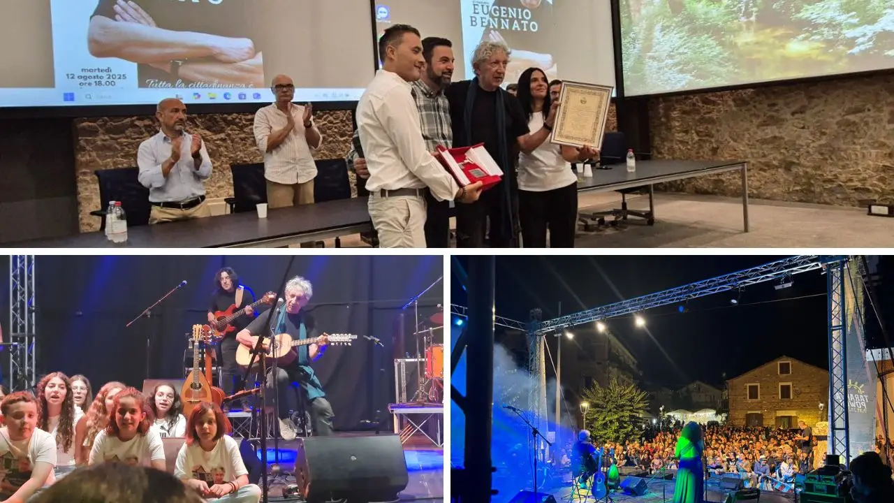 L’amministrazione comunale di Mongiana ha conferito la cittadinanza onoraria a Eugenio Bennato, in una cerimonia che si è tenuta presso la sala convegni del MuFar. Il riconoscimento è stato concesso «in segno di profonda stima e riconoscenza per aver scritto e composto la canzone “Mongiana”. La sua opera ha contribuito ad arricchire la nostra comunità, portando lustro e prestigio alla nostra storia. Con profonda gratitudine, la comunità mongianese accoglie Eugenio Bennato nella sua comunità» Così cita la pergamena consegnata al cantautore napoletano, a cui è stata consegnata anche la “chiave” del paese, «grati per la sua bellissima canzone “Mongiana”, un inno che porteremo nel cuore».