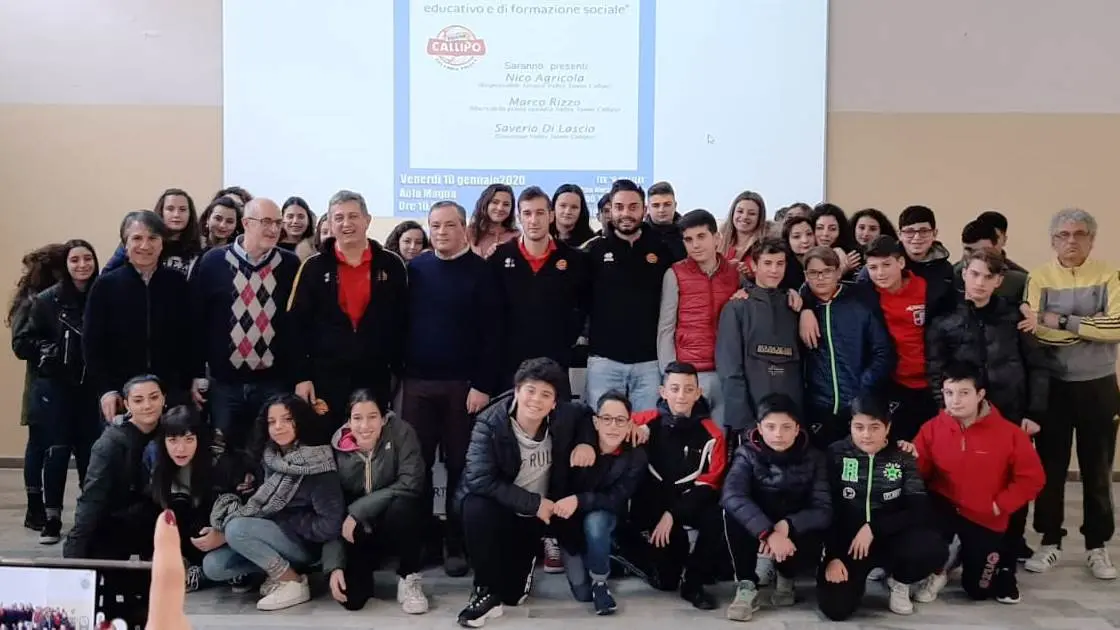 “Lo sport come percorso educativo e di formazione sociale”. Questo il titolo della conferenza svoltasi all’Istituto tecnico economico “Galilei” di Vibo Valentia, con ospiti d’eccezione i giocatori della Volley Tonno Callipo Marco Rizzo e Saverio Di Lascio e il responsabile tecnico Nico Agricola, i quali hanno incontrato gli studenti dell’istituto che per l’occasione ha ospitato una classe della scuola media “Garibaldi”, come attività formativa di “curricolo verticale”.