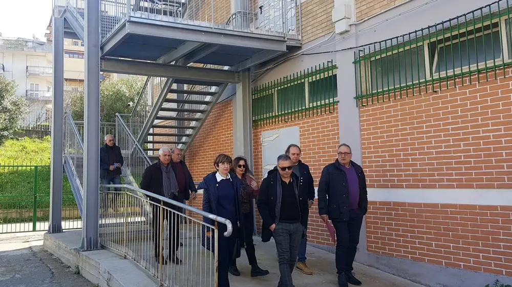 La scala esterna di sicurezza a servizio dell’immobile adibito, da anni, a Liceo Classico, è una struttura indipendente in acciaio, ancorata alle fondazioni (in calcestruzzo cementizio armato) mediante delle piastre in acciaio, fissate nel cemento con l’impiego di adeguati tirafondi e imbullonate alla struttura. Destinata per il collegamento verticale dei tre piani fuori terra dell’immobile, raggiunge un’altezza di quasi 8 metri. L’importo complessivo stanziato per la realizzazione dell’opera di edilizia scolastica ammonta a circa 150mila euro.