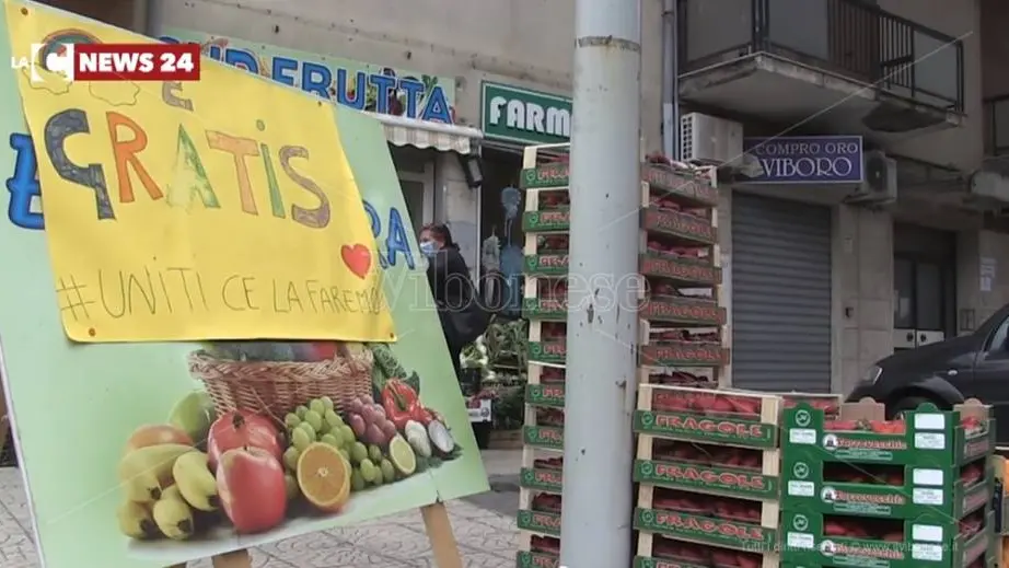 Ogni sera la giovane fruttivendola di Vibo Valentia, prima di chiudere l’attività, riempie sei, sette sacchetti di prodotti alimentari che lascia davanti alla porta del negozio, dove ha allestito un banchetto con un cartello colorato che riporta la scritta: “È GRATIS”.