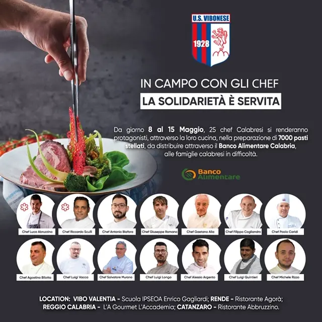 La solidarietà è servita. Al fianco della Vibonese ci saranno Luca Abbruzzino stella Michelin; Riccardo Sculli stella Michelin; Antonio Biafora menzione buona cucina Michelin; Giuseppe Romano menzione buona cucina Michelin; Filippo Cogliandro menzione buona cucina Michelin; Gaetano Alia menzione buona cucina Michelin; Pier Luigi Vacca menzione buona cucina Michelin; Agostino Bilotta menzione buona cucina Michelin; Michele Rizzo menzione buona cucina Michelin; Francesco Mastroianni, maestro gelatiere tra i cinque migliori al mondo, Paolo Caridi Maestro Pasticciere; Luigi Longo; Luigi Ammirati; Ercole Villirillo; Luigi Quintieri; Antonio Fuoco; Salvatore Murano; Enzo Grasso; Michele Monteleone; Giuseppe Rombolà; Daniele Crigna; Alessio Argento, Valerio Laino, Giuseppe Mandaradoni, Abdou Dibbasey e Salihu Barrow, Arrigo Sebastiano; Pietro De Grazia; Veneruci Emanuele.