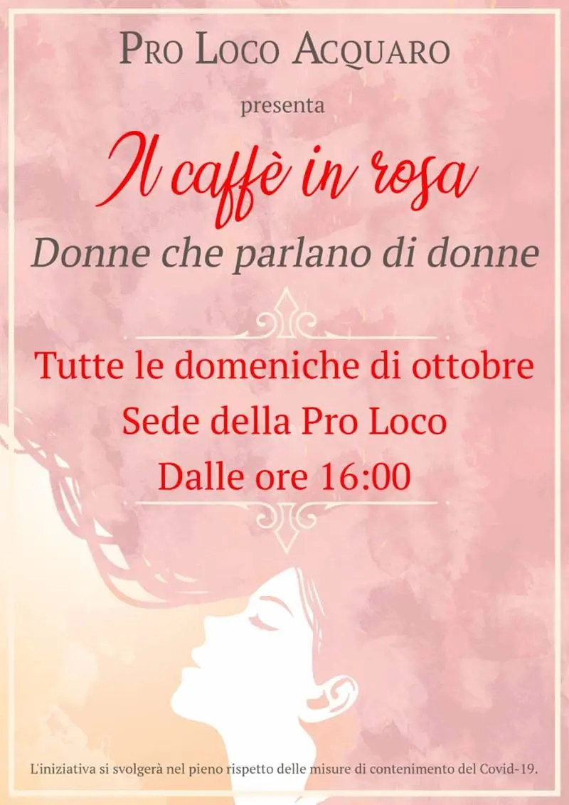 “Il caffè in rosa… donne che parlano di donne”, vuole essere «un incontro da ripetere anche nelle domeniche successive, dove si discuterà, tra donne, non solo di prevenzione, ma anche di problematiche sociali, riguardanti la figura della donna nella società odierna, anche perché come affermato da una partecipante all’evento: “Qualsiasi cosa accada, ad un essere umano, nella vita ci sarà sempre una donna pronta a sostenerlo”». L’iniziativa è stata accolta con grande partecipazione e si è svolta «in una sede che per l’intero mese sarà illuminata dal colore rosa, visibile anche dall’esterno, in modo da ricordare a tutti i passanti il messaggio di sensibilizzazione sul tema della prevenzione».