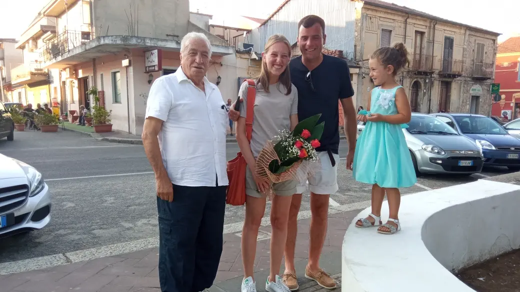 Quella per il ciclismo è una passione di lunga data a Mileto. Un amore che nell’arco dei decenni non ha conosciuto pause di sorta e che, in ultimo, nell’ottobre scorso è culminato con una tappa del Giro d’Italia proprio con partenza dalla cittadina normanna. Frutto e coronamento del certosino lavoro del patron di mille corse, nonché ex presidente regionale della Federazione ciclistica italiana, Mimmo Bulzomì, ma anche di una comunità intera che non vedeva l’ora di “vestirsi” di rosa. A conferma del fatto che Mileto continua ad assurgere a punto di riferimento sul territorio per questa disciplina, le iniziative che si susseguono in questo ambito (Pinocchio in bicicletta) e le presenze costanti di campioni e persone a vario modo legati al mondo delle due ruote. Nei giorni scorsi, a visitare la cittadina normanna è stata Giulia Coppi, nipote del “campionissimo” Fausto. Ad accoglierla, l’immancabile “amico di famiglia” Bulzomì, i membri del locale “Sporting Club” e numerosi appassionati del settore. La nipote del mito del ciclismo, in vacanza sulla Costa degli Dei con il fidanzato Marco, a Mileto nell’occasione ha fatto sosta davanti al monumento in onore del nonno, realizzato dal maestro Antonio La Gamba in occasione della partenza della tappa del Giro, per poi visitare le bellezze storico-artistiche della città elevata nel 1058 da Ruggero I d’Altavilla a capitale della propria contea. Tra queste, la maestosa basilica cattedrale, chiesa madre della più antica diocesi di rito latino del meridione d’Italia. Dopo l’immancabile cena che le ha permesso di gustare in un noto ristorante le specialità culinarie del luogo, il saluto all’amico Bulzomì, in attesa che a novembre a Mileto giunga papà Fausto junior, figlio dell’“Airone”, mito del ciclismo divenuto tale grazie alle imprese compiute a metà del ‘900 nelle più grandi competizioni mondiali.