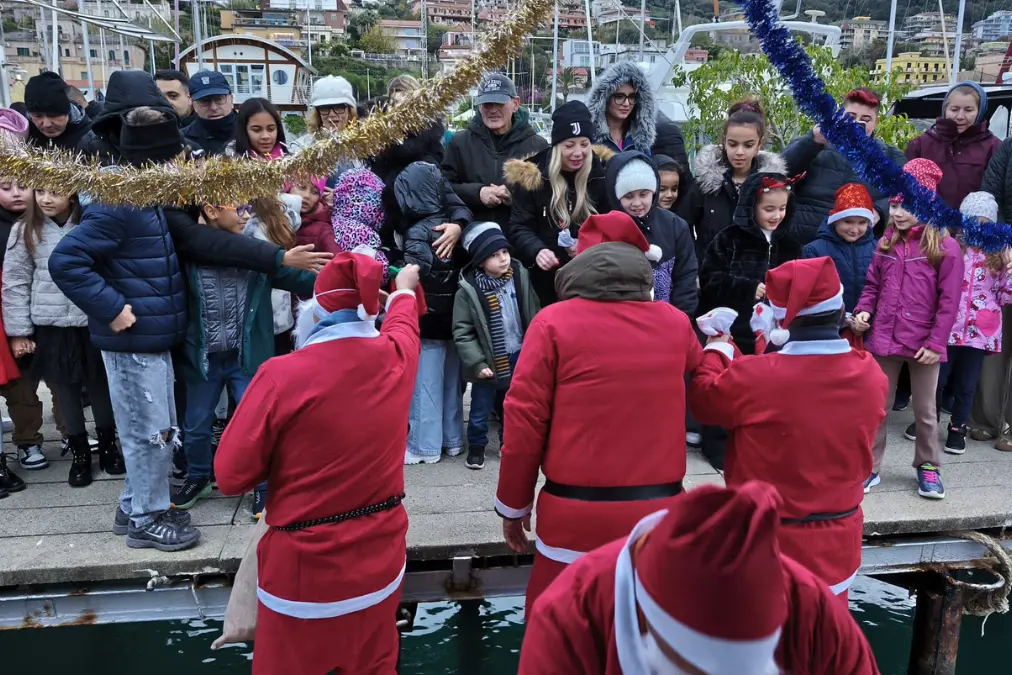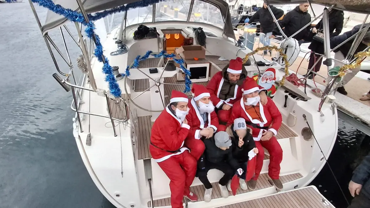 In quattro, di rosso vestiti e con barba bianca, sono arrivati a bordo del natante confiscato ai trafficanti di esseri umani e destinato ora a scopi sociali. Una giornata magica, anche grazie alla collaborazione della parrocchia