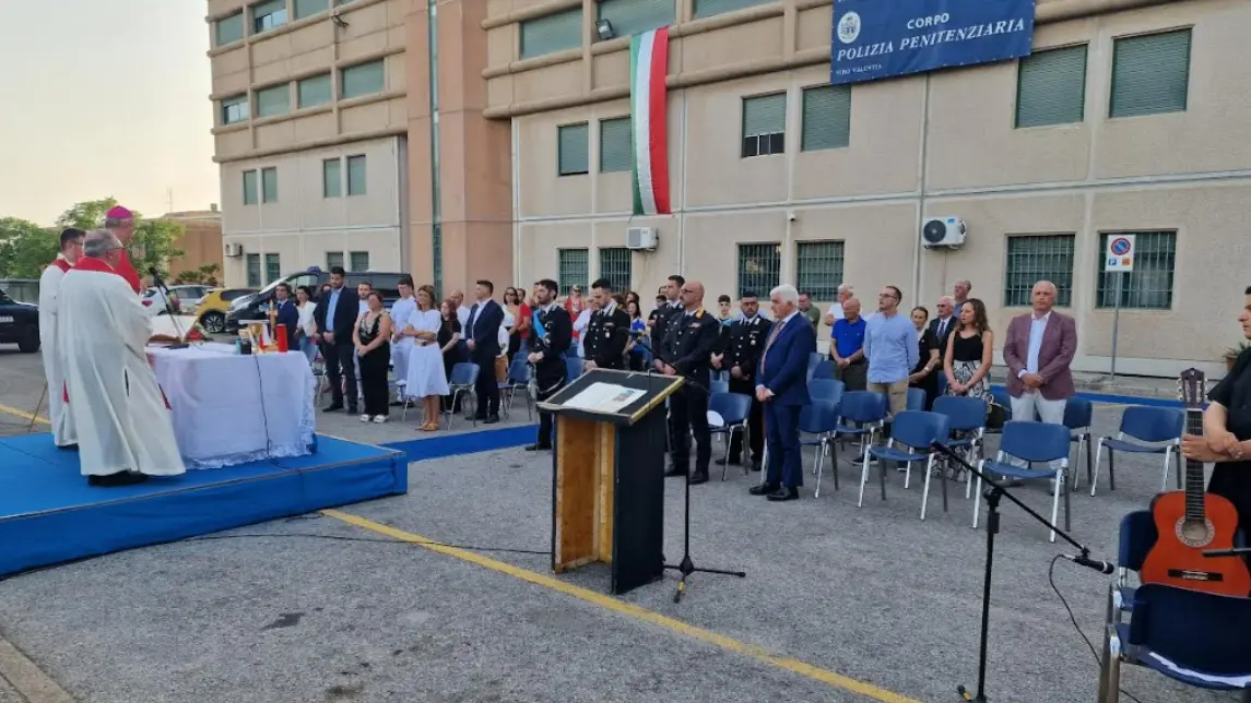 Grande festa della Polizia Penitenziaria di Vibo Valentia ieri presso il piazzale antistante la casa circondariale. La cerimonia è iniziata alle ore 19 con la Santa messa officiata dal vescovo monsignor Attilio Nostro e i due cappellani del carcere don Maurizio Macrì e don Pietro Pontoriero alla presenza delle massime autorità civili e militari, tra sui prefetto di Vibo Valentia, Roberta Lulli. Presente tra le numerose autorità anche il vice sindaco di Vibo Valentia e l’onorevole Tucci. La cerimonia si è conclusa con gli apprezzatissimi discorsi del direttore Angela Marcelo e del comandante Salvatore Conti. La messa è stata allietata dallo straordinario coro formato dai migliori docenti della Casa Circondariale appartenenti all’istituto Tecnico economico di Vibo Valentia “Galileo Galilei” e la presenza del vice comandante Carmelo D’Angelo. [Continua in basso]