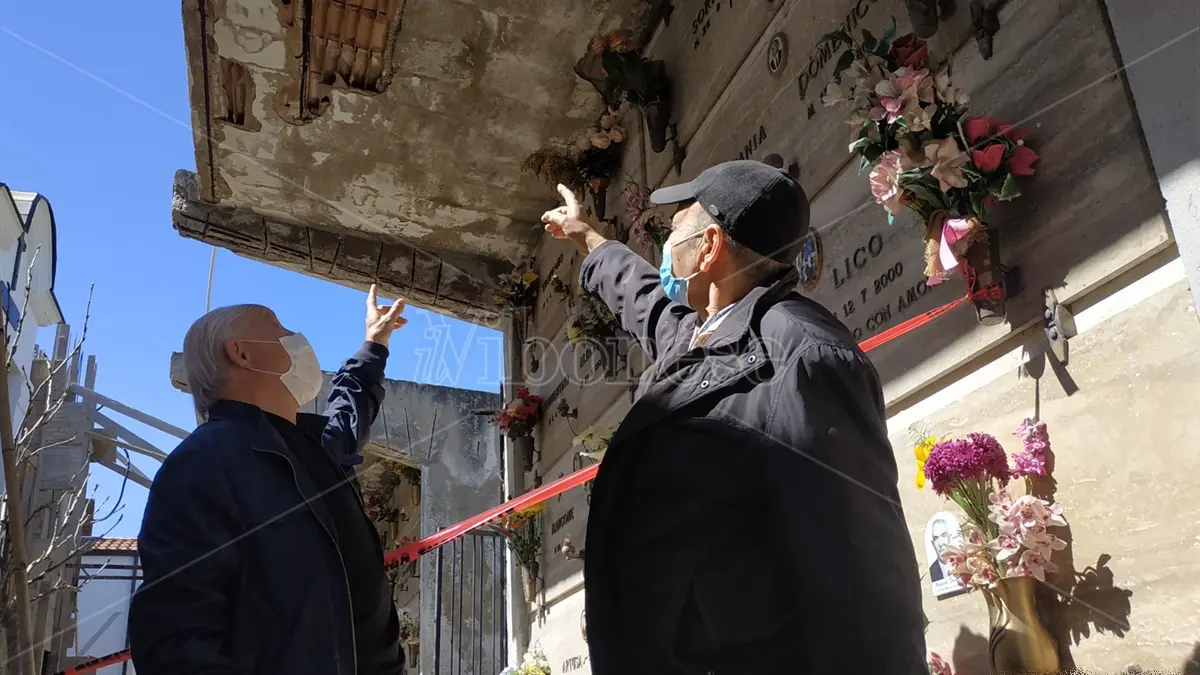 «Bisogna indossare l’elmetto come in guerra per proteggersi dai calcinacci» che piovono dal tetto marcio di alcune edicole funerarie. È la provocazione lanciata da Stefano Tripodi contro lo stato di degrado e di abbandono in cui versa il cimitero di Bivona, popolosa frazione di Vibo Valentia. Nonostante i numerosi crolli, nulla è ancora stato fatto: «Lo scorso anno – aggiunge Giuseppe Mercadante – ci fu un crollo che per poco non mi colpì. Chiamai i carabinieri e i vigili del fuoco, l’area – ricorda – venne transennata ma nessun intervento venne poi effettuato». Poche settimane fa si sono verificati nuovi cedimenti in un’altra area delimitata con del nastro: «Tra pochi giorni qualcuno rimuoverà le transenne – dice amareggiato l’uomo – a rischio e pericolo degli ignari visitatori». [Continua in basso]