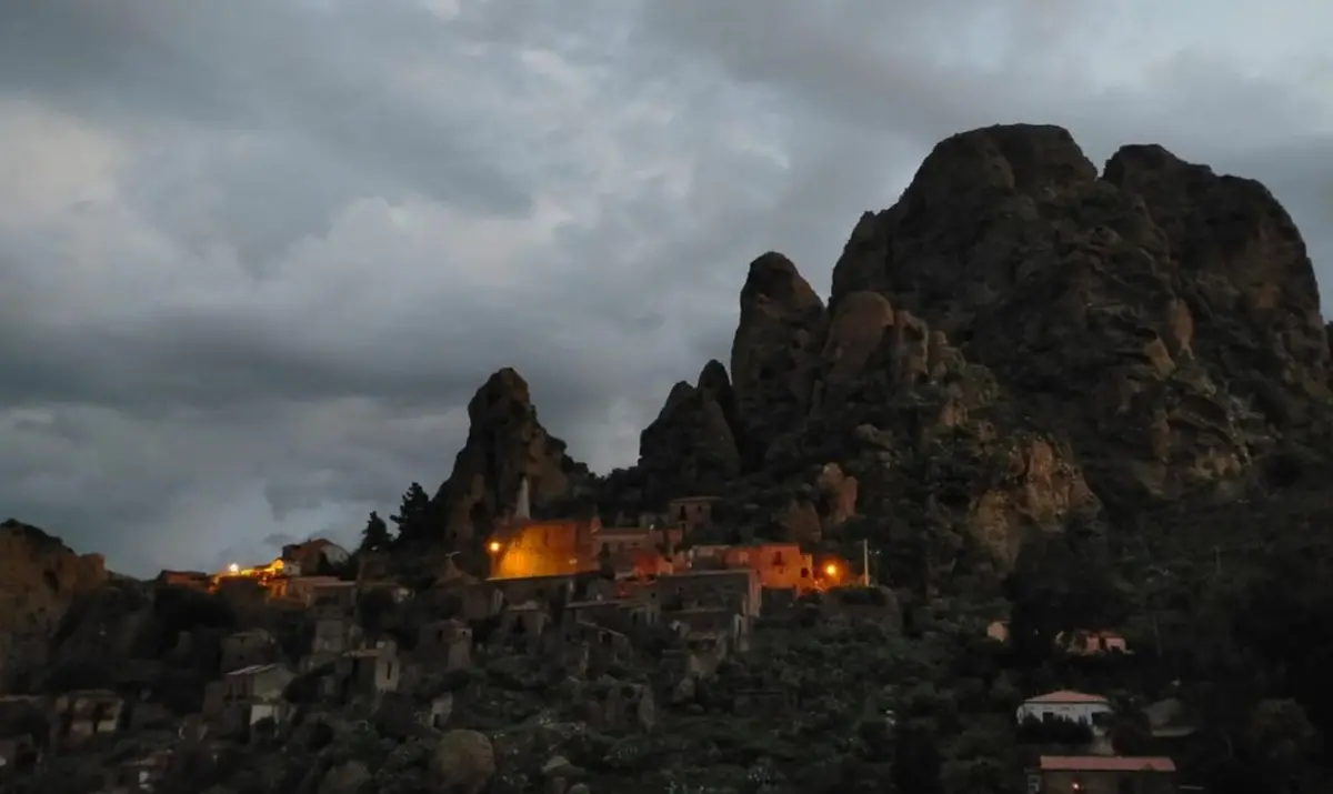 Sempre nel cuore dell’Aspromonte, sul Monte Calvario, troviamo Pentedattilo, uno dei più noti paesi fantasma della Calabria, che si presenta con una parte più bassa crollata, e la parte più alta che negli ultimi anni è stata ripristinata e si è arricchita in alcuni casi di botteghe e spazi da abitare, anche se saltuariamente. A vivere qui Rossella, che accoglie i visitatori che passano dal paese il cui nome deriva dal greco “pente”, cinque, e “dactilo”, dita, per via della roccia a forma di mano che sovrasta il paese, e poco più distante Daniela, con la sua bottega di arte e ricami. Intorno alle mura del castello, del quale rimangono per lo più dei ruderi, aleggia una leggenda sanguinaria riguardante due famiglie: gli Alberti e gli Abenavoli. Il barone Bernardino Abenavoli e il figlio del viceré di Napoli Don Petrillo Cortes erano innamorati entrambi della stessa donna, Antonietta Alberti, che fu concessa in moglie a al figlio del vicerè. Questo innescò le ire del barone, che nella notte di Pasqua del 1686 si introdusse nel castello colpendo Lorenzo Alberti con numerose pugnalate, costringendo Antonietta a sposarlo. Il viceré per vendicarsi inviò una spedizione facendo uccidere tutti gli uomini di Bernardino. Il barone riuscì a fuggire insieme ad Antonietta che fu successivamente rinchiusa in un convento di clausura. I piccoli vicoli abbandonati ma curati vi trasporteranno in un’altra dimensione, quella lenta dei piccoli paesi, che è sempre difficile lasciare. Se non volete fare un viaggio mordi e fuggi, potete chiedere di alloggiare in una delle stanze delle case sparse lungo l’area in parte ripristinata, per godere di tranquillità, buon cibo e panorami meravigliosi. Per i più romantici, in un angolo appartato, c’è la panchina dei baci. Dai ruderi del castello vedrete un tramonto spettacolare, con vista sull’Etna che vi lascerà letteralmente a bocca aperta. Provare per credere.
