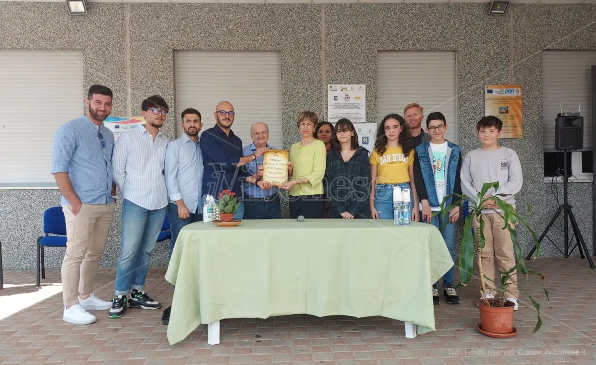 Il premio è stato consegnato da Fabio Signoretta, tra i fondatori di CaLab 5.0 e sindaco di Ionadi, alla dirigente Piro. Emozionati gli alunni, che con una lettera hanno inteso ringraziare quanti li hanno accompagnati nel percorso che li ha visti protagonisti. «Siamo orgogliosi di essere risultati vincitori del concorso Piero Calamandrei – si legge nella missiva, che questa mattina è stata letta nel corso della manifestazione -. Vogliamo ringraziare coloro che hanno reso possibile la realizzazione del tutto: la nostra dirigente Marisa Piro sempre pronta a supportare le nostre richieste, il sindaco di Limbadi Pantaleone Mercuri e l’assessore all’istruzione Alessandra Limardo per la disponibilità nell’acquisto dei libri e per averci ospitato nei locali del comune, il referente di “Libera contro le mafie” e dell’ Associazione San Benedetto Abate, Giuseppe Borrello, che, con l’aiuto di Maria Joel Conocchiella, ci coinvolge sempre in nuovi e interessanti progetti. Ultime ma non ultime le nostre professoresse di Lettere che ci hanno seguito, incoraggiandoci e sostenendoci durante tutto il percorso.