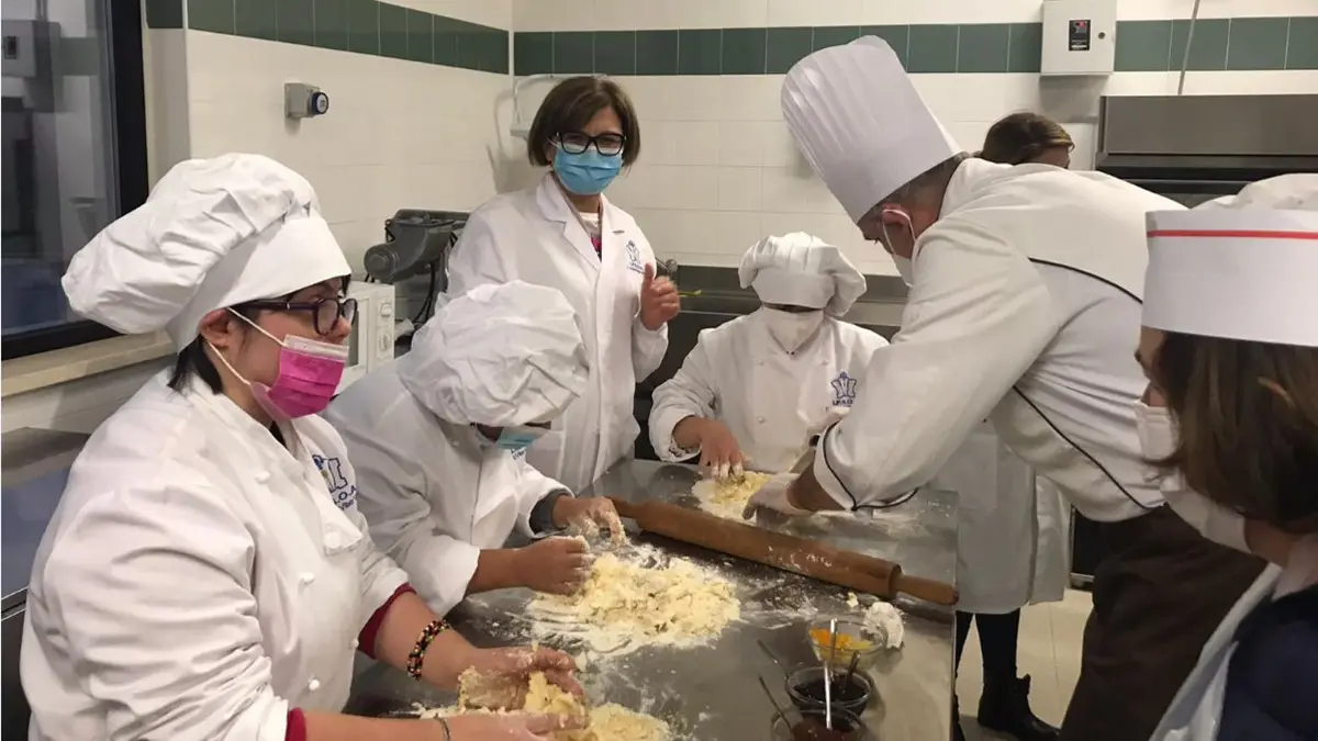 Lo si è potuto sperimentare nel primo significativo incontro si è svolto la settimana scorsa. Oltre tre ore insieme a docenti e genitori nei laboratori di pasticceria sotto la guida del docente di enogastronomia Pino Cardamone, degli studenti del corso serale e del personale tecnico dell’Ipseoa, con la partecipazione straordinaria di Alessandro Greco, pasticcere ed ex studente del Serale. I ragazzi Down hanno vissuto un’ esperienza formativa in cui l’arte della pasticceria si è coniugata con la convivialità, manifestando entusiasmo e voglia di apprendere.