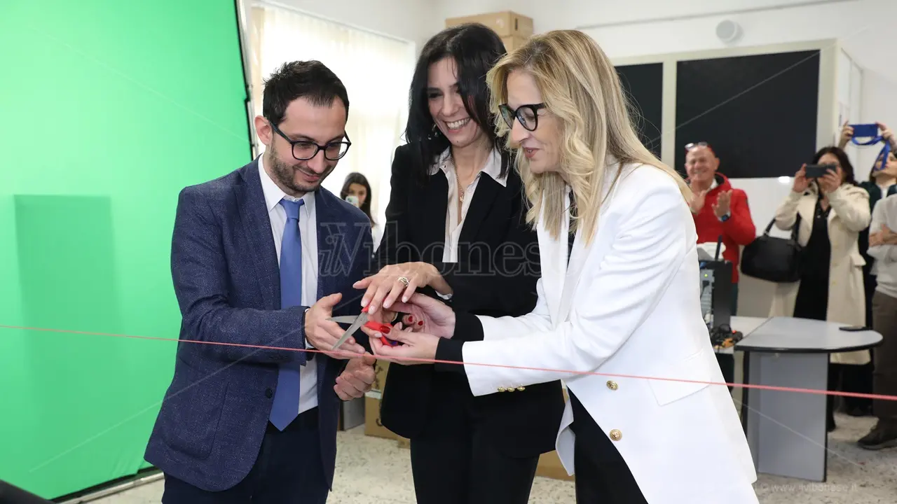 Un vero e proprio studio televisivo, con tanto di regia, luci, telecamere e postazione del conduttore. Ma in una scuola, l’Istituto comprensivo Amerigo Vespucci di Vibo Marina. La redazione del Tg Young, realizzata in collaborazione con il network LaC, è stata inaugurata questa mattina dalla vice presidente della Regione Calabria e assessore all’Istruzione Giusi Princi, dal direttore generale della società editoriale Diemmecom Maria Grazia Falduto e dal dirigente scolastico Giuseppe Sangeniti. Quest’ultimo si è soffermato sull’importanza di un’iniziativa che mette in campo il “sapere pratico”. «I nostri alunni avranno la possibilità di andare in onda nello studio realizzato grazie ai fondi Pnrr, con la possibilità di interagire con professionisti del settore e capire cosa c’è dietro le quinte di una redazione giornalistica e televisiva». La prima edizione del Tg Young andrà in onda domenica 25 febbraio, alle 14.30, su LaC Tv grazie al supporto della squadra di professionisti coordinati da Stella Santoro e coadiuvati dal direttore di Rete, Franco Cilurzo, che negli ultimi mesi hanno accompagnato la formazione dei ragazzi coinvolti, trasformandoli in veri giornalisti e tecnici televisivi. «L’obiettivo è quello di far conoscere ai ragazzi il vero mondo dell’informazione – ha spiegato Maria Grazia Falduto, che ha sottolineato l’importanza della sinergia tra mondo delle imprese e scuola -. Negli ultimi anni la diffusione dei social media e il sorpasso dell’informazione digitale hanno completamente trasformato il nostro modo di comunicare. Noi come Network vogliamo fare comprendere cosa significhi fare un’informazione di qualità, attendibile e autorevole, in un contesto così profondamente mutato rispetto a quando il messaggio dei media era unidirezionale».