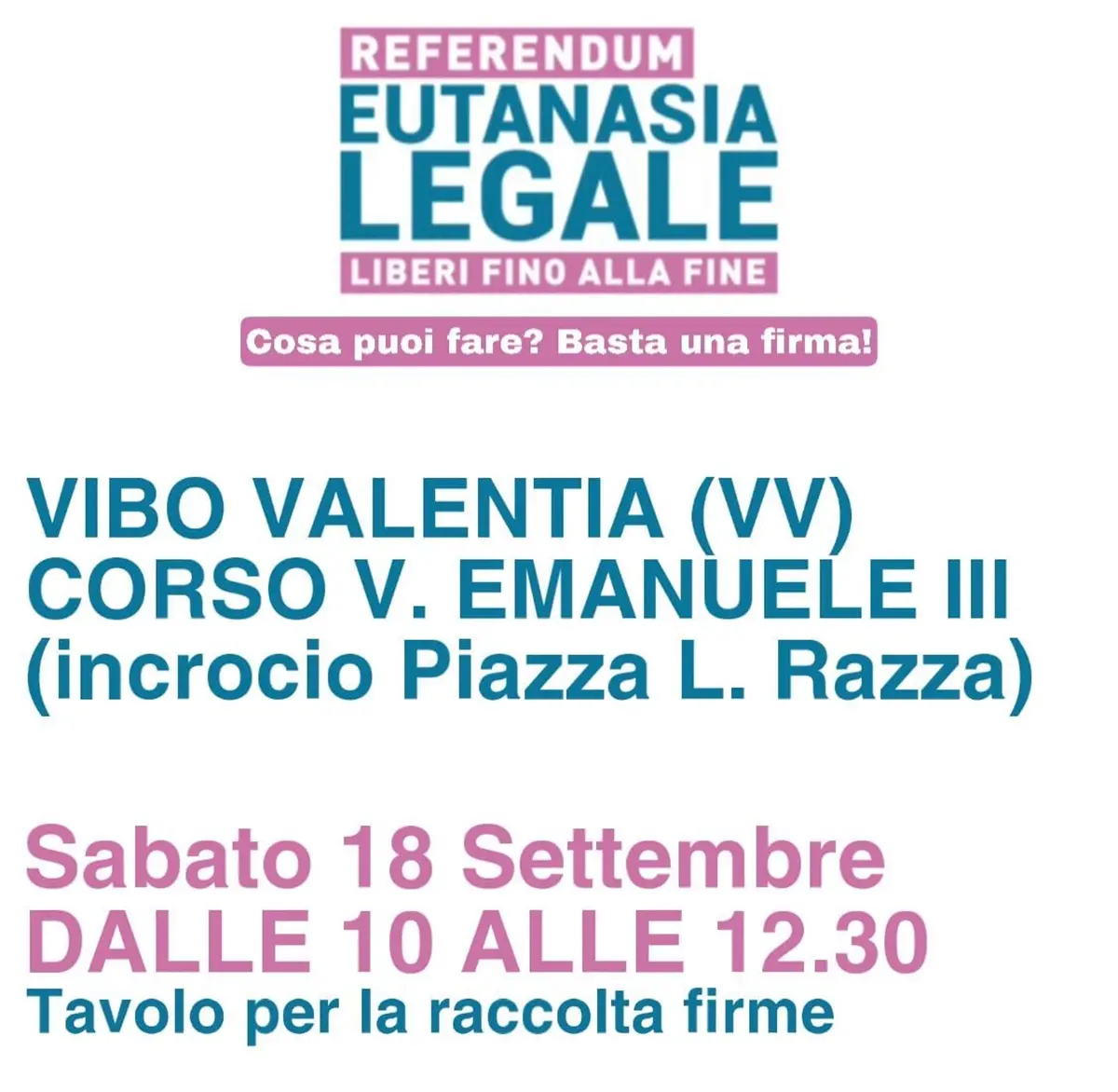 Arriva anche a Vibo Valentia la raccolta firme per il referendum per l’introduzione dell’eutanasia legale in Italia, promosso dall’associazione Luca Coscioni.
