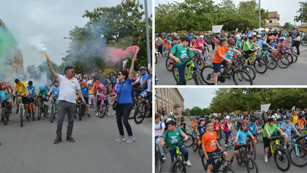 La manifestazione si concretizza in una allegra pedalata in sicurezza lungo le vie cittadine ed è rivolta principalmente a bambini e ragazzi, ma è aperta a tutti i cittadini: un’ opportunità per pedalare insieme! Nonostante le previsioni metereologiche un po’ critiche, quasi 100 i bambini presenti ai nastri di partenza in compagnia dei propri genitori che in sella alle proprie bici hanno sfilato per le vie del paese in totale sicurezza accompagnati dalla pattuglia della Polizia Stradale e dai soci dell’associazione organizzatrice.