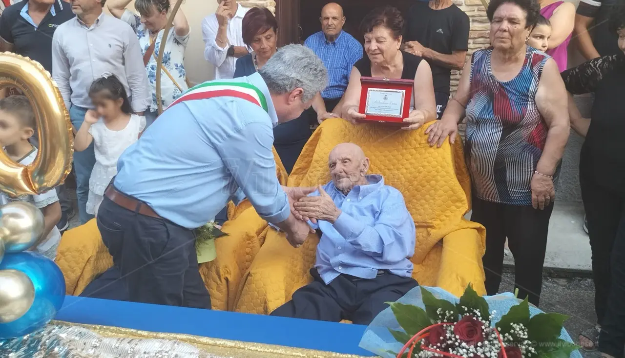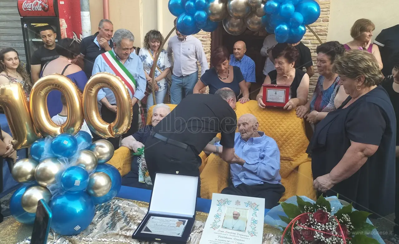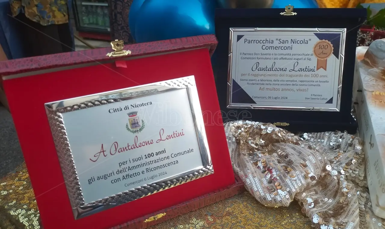 Nonno Pantaleone è nato a Limbadi il 6 luglio del lontano 1924. Rimasto orfano di mamma quando aveva solo 11 mesi, ha attraversato tempi difficili, segnati dalla guerra e dalla fame, ma sempre rimboccandosi le mani e dandosi da fare. Da giovanissimo, l’incontro con Nicolina e il matrimonio – il 28 novembre del 1945 – che lo ha portato a Comerconi, casa sua fino ad oggi. Generazioni e generazioni lo ricordano, ormai anziano, seduto in piazza a raccontare ai più giovani aneddoti del passato e di come funzionava il mondo una volta. «Rappresenta la storia della nostra comunità», ha detto don Saverio Callisti intervenendo durante la festa per i suoi 100 anni. Il parroco, a nome di tutta la popolazione comerconese, ha omaggiato il signor Lentini con una targa ricordo: «Tutti lo conosciamo come una persona onesta ed educata, tante volte mi ha raccontato la sua vita e i sacrifici fatti. Ha sempre lavorato nei campi e ha costruito una grande famiglia, un uomo da ammirare».
