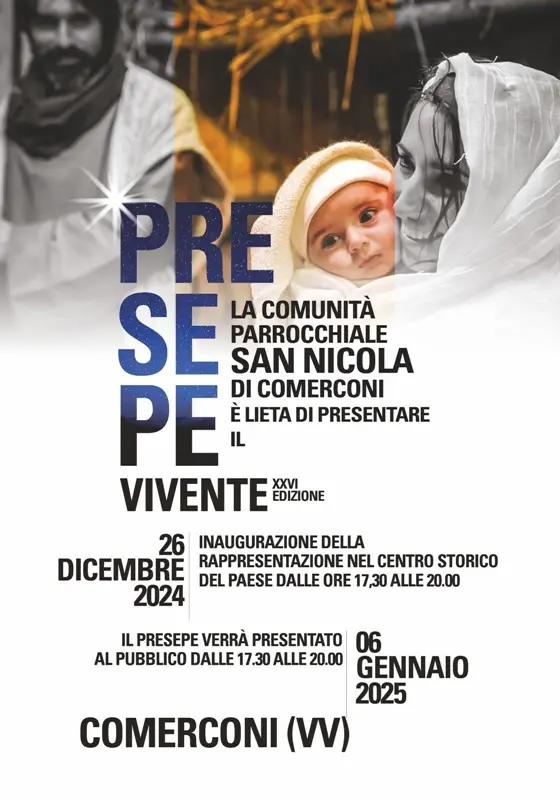 È la 26esima edizione eppure dopo tanti anni non sono venuti meno l’entusiasmo e l’attesa per un appuntamento diventato ormai storico: il Presepe vivente di Comerconi. Dal lontano 1997, nelle giornate del 26 dicembre e 6 gennaio la piccola frazione di Nicotera si trasforma in una suggestiva Betlemme per ricordare e far rivivere ai tanti visitatori la nascita di Gesù. Ci si è fermati solo per due edizioni nel periodo del Covid, nonostante questo ad oggi la manifestazione comerconese è nel suo genere una delle più longeve a livello provinciale.