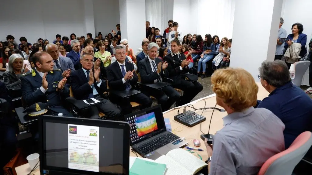 Limbadi ha ospitato la cerimonia di consegna del logo “La libertà non ha pizzo”, la campagna regionale promossa da Libera per promuovere la denuncia e l’affiancamento degli imprenditori che denunciano il racket. I vertici provinciali delle forze dell’ordine e le scolaresche protagonisti – assieme al commerciante Carmine Zappia, ai soci della “Cooper Poro”, agli operatori economici Andrea Dominianni e Vincenzo Chindamo – di un momento di riflessione corale voluto dal referente regionale di Libera, don Ennio Stamile, all’interno della Università della memoria e dell’impegno intitolata a Rossella Casini. Sono stati consegnati i distintivi della campagna che, partita da Reggio Calabria nel 2010, è ora diventata una piattaforma che su base regionale mette in contatto imprenditori coraggiosi e cittadini. Il prefetto Francesco Zito ha parlato proprio della necessità che sia la società civile ad aggiungersi allo Stato nel supporto a chi denuncia, concetto rilanciato anche nel suo intervento dal testimone di giustizia Tiberio Bentivoglio.