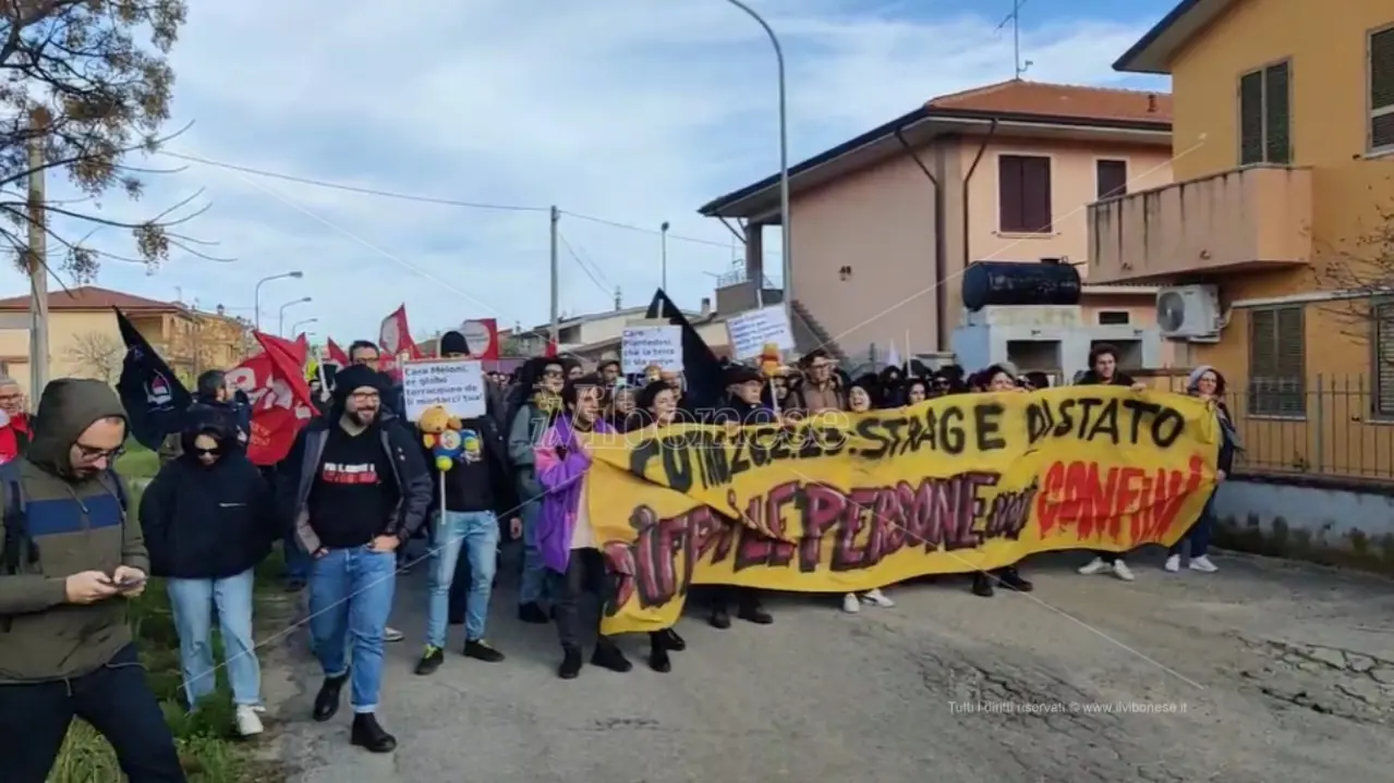 Nel frattempo la manifestazione prosegue. Dietro la croce realizzata con i legni della barca che si è infranta su una secca, ci sono almeno 5.000 persone provenienti da tutto il centro sud ed anche da regioni del nord. All’avvio del corteo c’è stato anche un battibecco con una signora che da un balcone inveiva contro i manifestanti, alcuni dei quali le hanno risposto cantando Bella ciao. Tra i partecipanti anche l’ex sindaco di Riace Domenico “Mimmo” Lucano. Il corteo, partito dall’ingresso della frazione Steccato di Cutro termina sul lungomare.