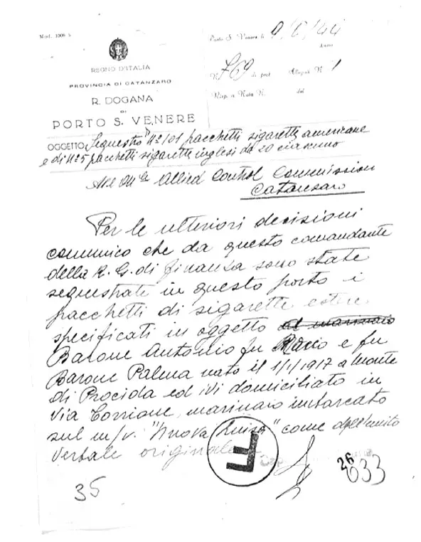 Negli anni della seconda guerra mondiale l’alimentazione degli italiani veniva regolata dalle tessere annonarie con cui i generi alimentari venivano razionati. Niente carta annonaria, però, per i generi voluttuari, come ad esempio il caffè e tantomeno per le sigarette. Nonostante ci fossero pene severe per arginare il mercato nero, alcuni generi erano rivenduti a prezzi elevatissimi. Il 9 giugno del 1944, la Regia Dogana di Porto Santa Venere sequestra al marinaio Antonio Barone, di Monte di Procida, imbarcato sul motoveliero “Nuova Luisa”, 101 pacchetti di sigarette americane e 5 pacchetti di sigarette inglesi, tutte in pacchetti da venti sigarette ciascuno. Quantità che oggi appaiono risibili ma che all’epoca potevano costituire fonte di un elevato guadagno. Il verbale della Regia Dogana, pubblicato dallo storico e ricercatore Antonio Montesanti sul suo profilo Facebook, non costituisce soltanto una curiosità storica, ma assume la valenza di prova documentale che inficia la tesi secondo cui con il cambio del nome di Monteleone venne cambiato anche quello di Porto Santa Venere e aggiunge una nuova freccia all’arco dei fautori del ripristino dell’antico toponimo della cittadina portuale. Il documento riportante il verbale di sequestro, redatto da un ufficio statale come la Dogana, testimonia infatti come, ancora nel 1944, la località portuale era indicata ufficialmente con il nome di Porto Santa Venere a dimostrazione del fatto che il cambio di nome da Monteleone a Vibo Valentia, avvenuto nel 1928, non aveva interessato anche la località portuale, il cui nome non era stato sostituito con quello attuale di Vibo Marina. Fu solo nel dopoguerra, ma in assenza di atti ufficiali, che s’iniziò ad usare il nome di Vibo Marina. Intanto, per tornare all’attualità c’è da registrare l’iniziativa dall’assessore comunale alla Cultura, Giusi Fanelli, che per oggi – venerdì 12 gennaio, alle ore 18:30 – ha organizzato un incontro con le associazioni di Vibo Marina in cui verranno valutate proposte e riflessioni sul possibile ripristino dell’antico toponimo di Porto Santa Venere.