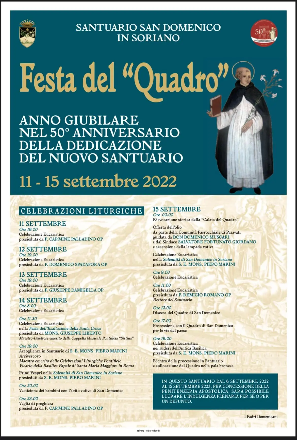 Richiama fedeli da ogni angolo della Calabria e anche fuori regioni. Rappresenta il cuore pulsante delle tradizioni religiose di Soriano e la sua storia nei secoli raggiunse anche le terre Oltreoceano. Il quadro miracoloso di San Domenico sarà al centro dei festeggiamenti in programma del centro del Vibonese, dall’11 al 15 settembre. Un calendario ricchissimo di appuntamenti con la fede, che risveglia i valori identitari e di comunità di Soriano e dei centri limitrofi. [Continua in basso]