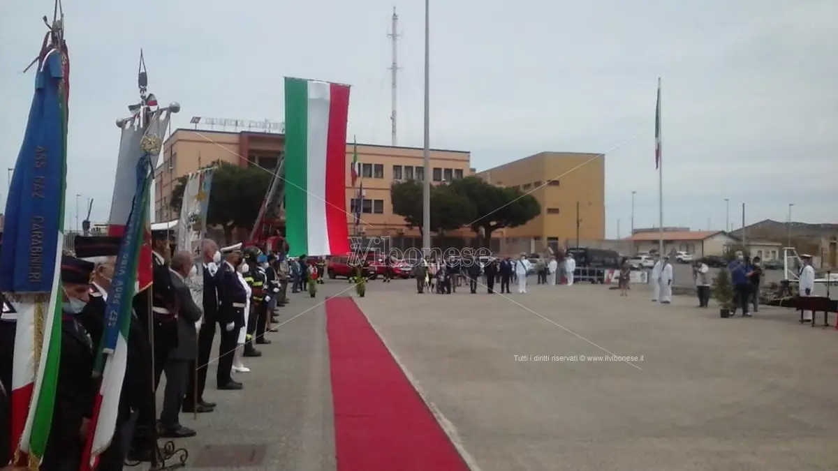 La cerimonia si è svolta, in una splendida giornata di primavera, sull’accogliente banchina Fiume con la suggestiva cornice del porto e tanta gente dietro le transenne. Un piccolo schieramento dei rappresentanti di tutte le Armi e dei vari Corpi ha reso gli onori militari. Le autorità civili erano rappresentate da prefetto, questore, sindaco di Vibo, presidente della Provincia, sottosegretario Dalila Nesci e senatore Mangialavori, mentre le autorità militari erano rappresentate dai comandanti della Capitaneria di Porto, della Guardia di Finanza-Roan, della GdF provinciale, dal colonnello dell’Arma dei carabinieri, dal comandante dei vigili del fuoco, oltre ai comandanti della polizia di Stato e del corpo agenti di custodia.