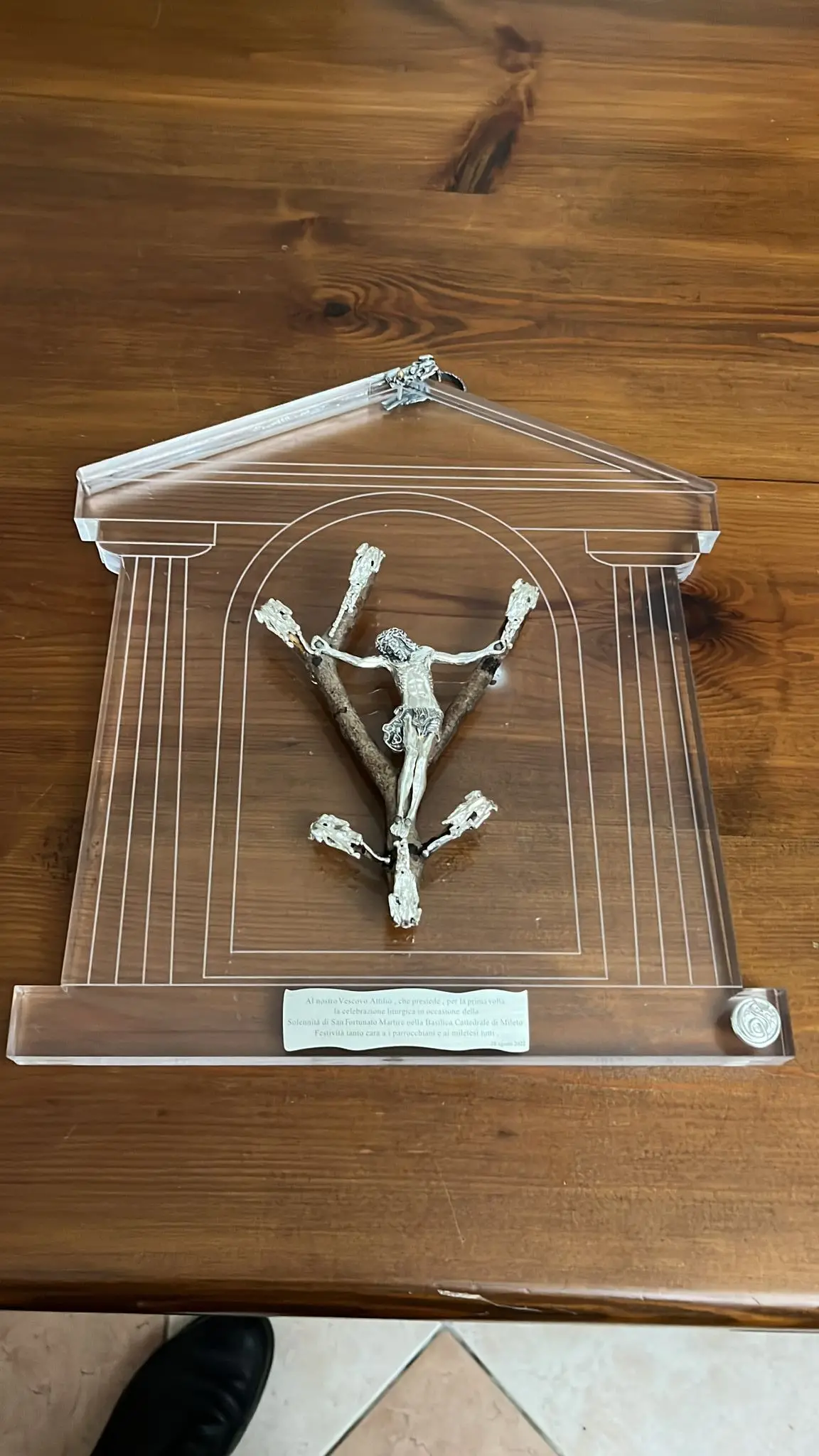 «Quest’opera unica realizzata in argento – ha affermato visibilmente commosso don Mimmo – raffigura il Cristo che si trova nella cattedrale di Palmi, città dove è nato il nostro vescovo. Gli viene donata in occasione della sua prima celebrazione liturgica della solennità di San Fortunato nella nostra cattedrale: festività tanto cara ai parrocchiani e ai miletesi tutti. L’opera – ha proseguito – è realizzata su una croce di legno d’ulivo raffigurante la famosa “Ulivarella” di Palmi, stesso materiale utilizzato per un’analoga creazione donata dal maestro Sacco a Papa Wojtyla in occasione del Giubileo del 2000, da lui tanto apprezzata poiché gli ricordava il capolavoro del Fazzini, denominato “Il Cristo degli abissi”, che si trova in Vaticano nella Sala Nervi». Il pastorale del vescovo Cortese è stato restaurato gratuitamente dal maestro orafo di Crotone. Alla sacra funzione in onore di San Fortunato Martire sono state presenti numerose autorità del territorio. Tra queste, il comandante della locale stazione dei carabinieri Clelia Picascia e il sindaco di Mileto Salvatore Fortunato Giordano, il quale al termine della celebrazione eucaristica ha voluto ringraziare il vescovo per tutto quello che sta facendo per Mileto e la diocesi. Lo stesso, ha poi sottolineato come il ritorno dell’annuale festa di San Fortunato rappresenti per Mileto ed il resto del territorio il simbolo della ripresa dopo la fase di pandemia da Covid-19, «allo stesso modo di quando nel 1783 si dovette ricostruire la città, sulle macerie della vecchio abitato normanno dilaniato dal terremoto».