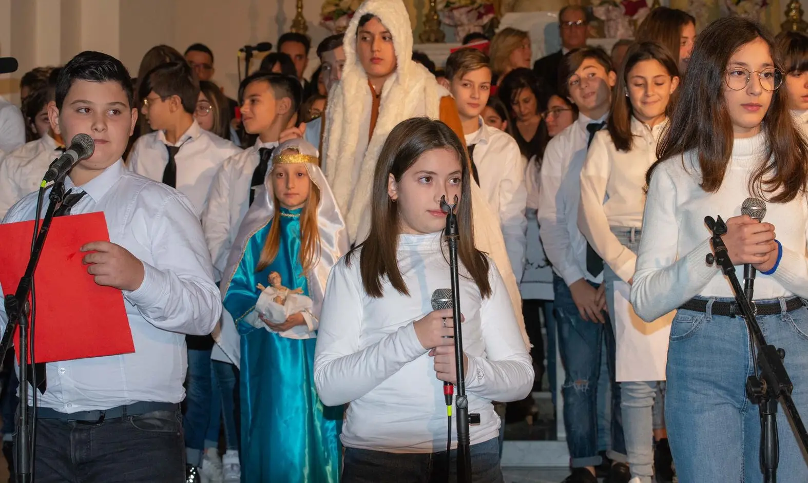 Una voce fuori campo ha contestualizzato il momento canoro, lasciando l’ingresso ai coristi adulti e al coro delle voci bianche con i bambini di terza, quarta, quinta elementare e scuole medie. I più piccini, infine, hanno ricreato il presepe vivente con Maria, Giuseppe e gli angioletti. I canti sono stati intervallati da riflessioni sul tema del Natale, incentrando l’evento sulla preghiera. L’entusiasmo e l’autentico spirito del Natale ha contagiato il numeroso pubblico che ha presenziato all’evento in una chiesa gremita, attenta, partecipe e commossa.