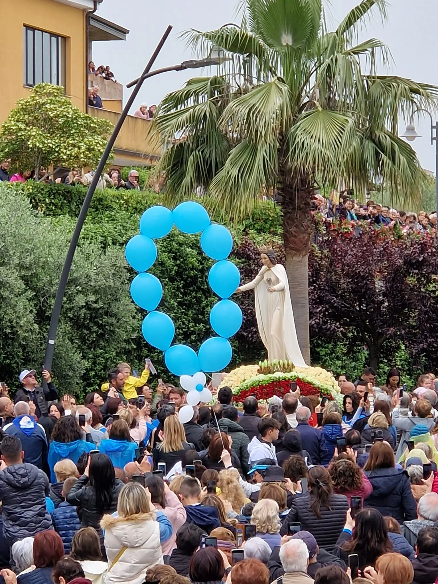 Si sono riversati in tanti, a Paravati, per il 36esimo anniversario della nascita della Fondazione “Cuore Immacolato di Maria Rifugio delle Anime”, “figlia” prediletta della Serva di Dio Natuzza Evolo, morta nel giorno di Ognissanti del 2009. Migliaia di pellegrini attratti dal forte carisma della mistica calabrese con le stigmate, incuranti delle previsioni meteo che preannunciavano una giornata dal clima non certo primaverile, anzi. E, in effetti, la pioggerellina insistente c’è stata per tutto il corso della mattinata, tanto da costringere i presenti a utilizzare l’ombrello. Un “inconveniente” che, a conti fatti, alla fine ha fatto sì che ne uscisse fuori un ulteriore spettacolo di colori. La ricorrenza è stata commemorata, come tradizione, in concomitanza con la Festa della Mamma. I cancelli che portano nella grande spianata della Villa della Gioia sono stati aperti alle ore 8. I festeggiamenti, invece, sono iniziati alle 10.30 con la processione dell’effige della Vergine giovinetta, così come Mamma Natuzza la vedeva in vita nel corso delle sue numerose apparizioni. Subito dopo si è svolta la santa messa all’aperto, alla presenza di decine di sacerdoti, degli stessi familiari della mistica, del presidente della Provincia di Vibo Valentia, Corrado L’Andolina, del sindaco di Mileto Salvatore Fortunato Giordano, di altre autorità territoriali e di un gran numero di pellegrini giunti da varie regioni d’Italia. Tra questi, molti appartenenti ai cenacoli mariani sorti in varie parti del mondo su input dell’umile donna calabrese. [Continua in basso]