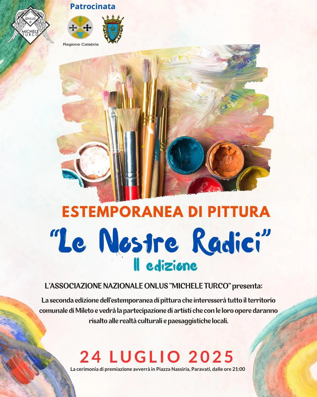 Tutto pronto per la tre giorni di eventi promossa a Paravati dalla locale associazione Onlus Michele Turco, in collaborazione con la Regione Calabria e il Comune di Mileto. Il giovane prematuramente scomparso era molto amato nel paese natio della Serva di Dio Natuzza Evolo. La rassegna prenderà il via giovedì 24 luglio con la seconda edizione dell’estemporanea di pittura “Le nostre radici” che interesserà tutto il territorio comunale. La partecipazione sarà gratuita e la direzione fornirà a tutti gli artisti anche la tela (50×70) su cui realizzare l’opera, che dovrà dare risalto alle realtà culturali e paesaggistiche locali. Sono previsti premi in denaro per i primi otto classificati. Al vincitore della rassegna, nello specifico, andrà la somma di 500 euro. Nell’occasione saranno anche selezionate le dodici opere pittoriche da inserire nell’edizione 2026 del calendario realizzato annualmente dalla locale associazione di terzo settore. La cerimonia di premiazione avverrà in piazza “Caduti di Nassiriya”.
