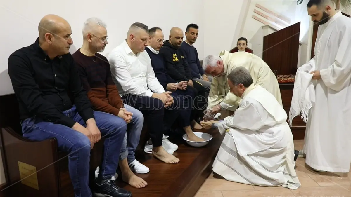 Inginocchiato al cospetto dei 12 parrocchiani, il parroco ha riportato in vita uno dei segni più forti e dirompenti del Vangelo di Giovanni: la lavanda dei piedi. È seguita la benedizione e la distribuzione del pane ai fedeli che si preparano a vivere con devozione la morte e la resurrezione di Gesù Cristo.
