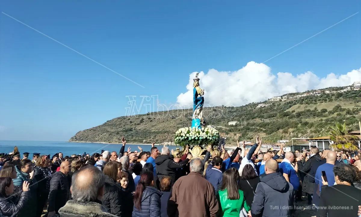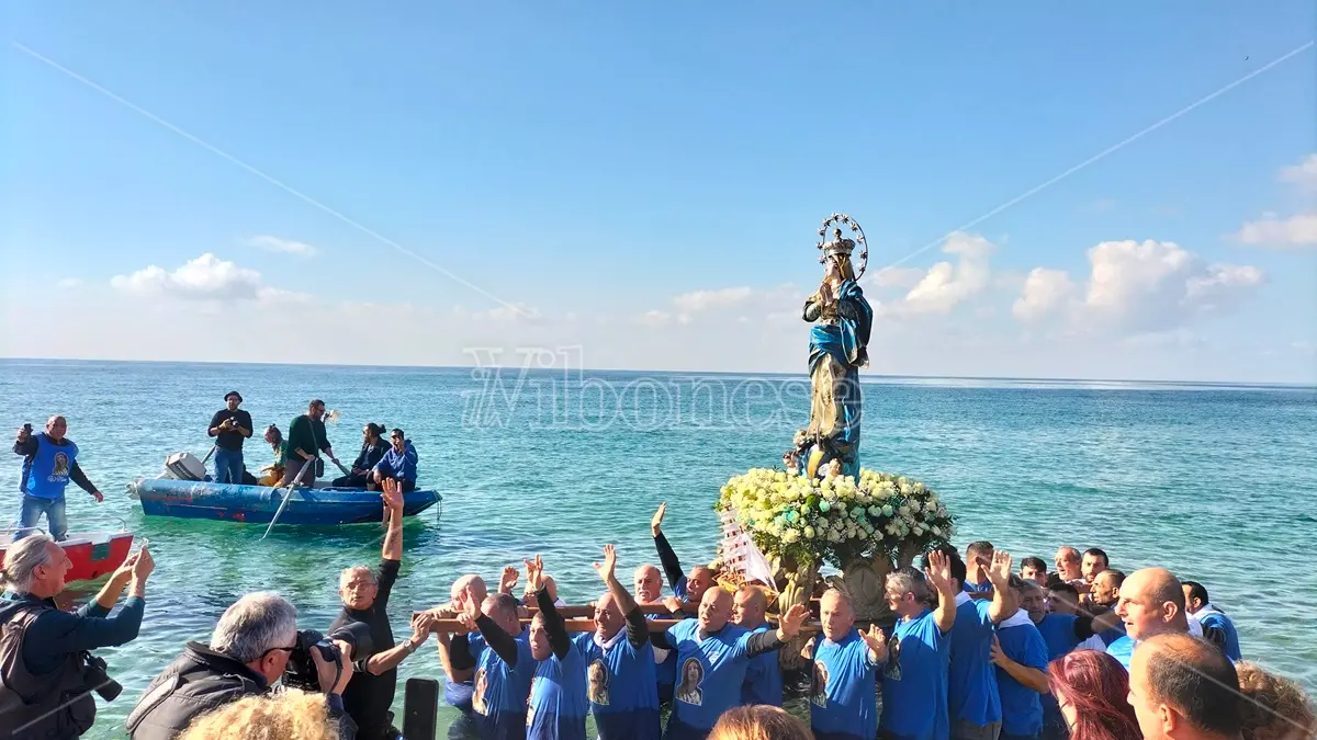 Era la seconda metà del Settecento quando, dopo una violenta mareggiata, alcuni giovani pescatori avvistarono in mare una grande cassa di legno. Nicotera Marina non esisteva ancora e chi viveva di pesca abitava nel quartiere Palmentieri, a Nicotera superiore. Pensando di trovare un tesoro, i giovani pescatori si precipitarono in spiaggia: il tempo di arrivare e intanto la cassa era stata trascinata dalle correnti per diverse centinaia di metri, verso località “Fosso”. Una volta recuperata, la scoperta: dentro c’era una statua dell’Immacolata. Nasce da questo episodio, tramandato oralmente da generazione in generazione, la grande devozione che lega gli abitanti di Nicotera Marina all’Immacolata Concezione. Tant’è che quella stessa effigie di Maria ogni anno viene portata in processione in mare, ripercorrendo lo stesso tragitto che la grande cassa di legno fece oltre due secoli fa dal momento dell’avvistamento fino a quando fu portata sull’arenile. Una tradizione antichissima, interrotta per due anni dalla pandemia e che oggi è tornata, tra la commozione delle migliaia di persone presenti. [Continua in basso]