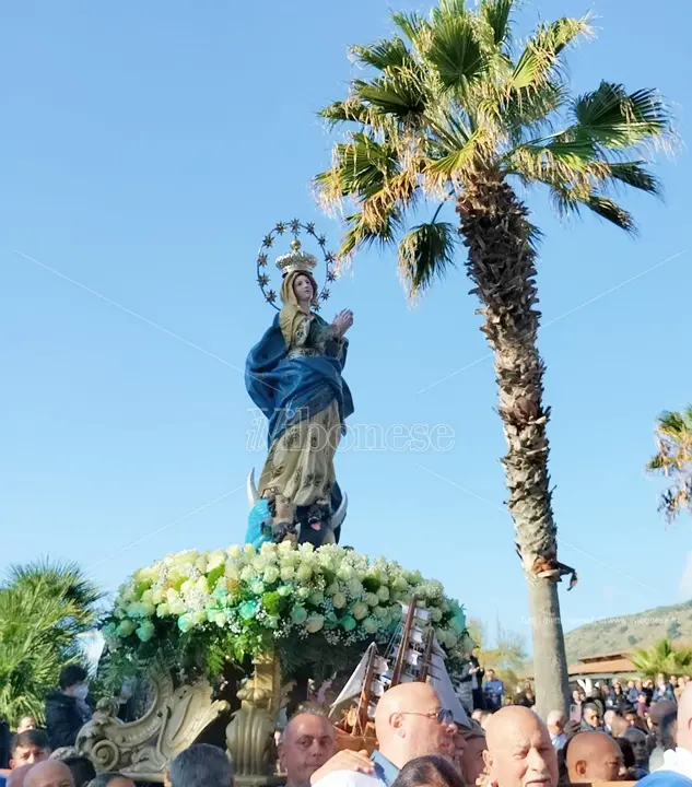 Un fiume di gente che, giunta da tutto il comprensorio, sul lungomare o direttamente sulla sabbia ha atteso la Madonna. Una volta uscita dalla chiesa e dopo un breve giro per alcune vie del paese, la processione ha raggiunto la spiaggia. Qui, come da tradizione, la statua dell’Immacolata è stata presa in spalla dai pescatori che, immergendosi poi tra le onde, l’hanno portata in corteo per diverse centinaia di metri al grido di “uno, due, viva Maria”. Nello specchio d’acqua antistante, le loro barche hanno accompagnato il cammino della Vergine.