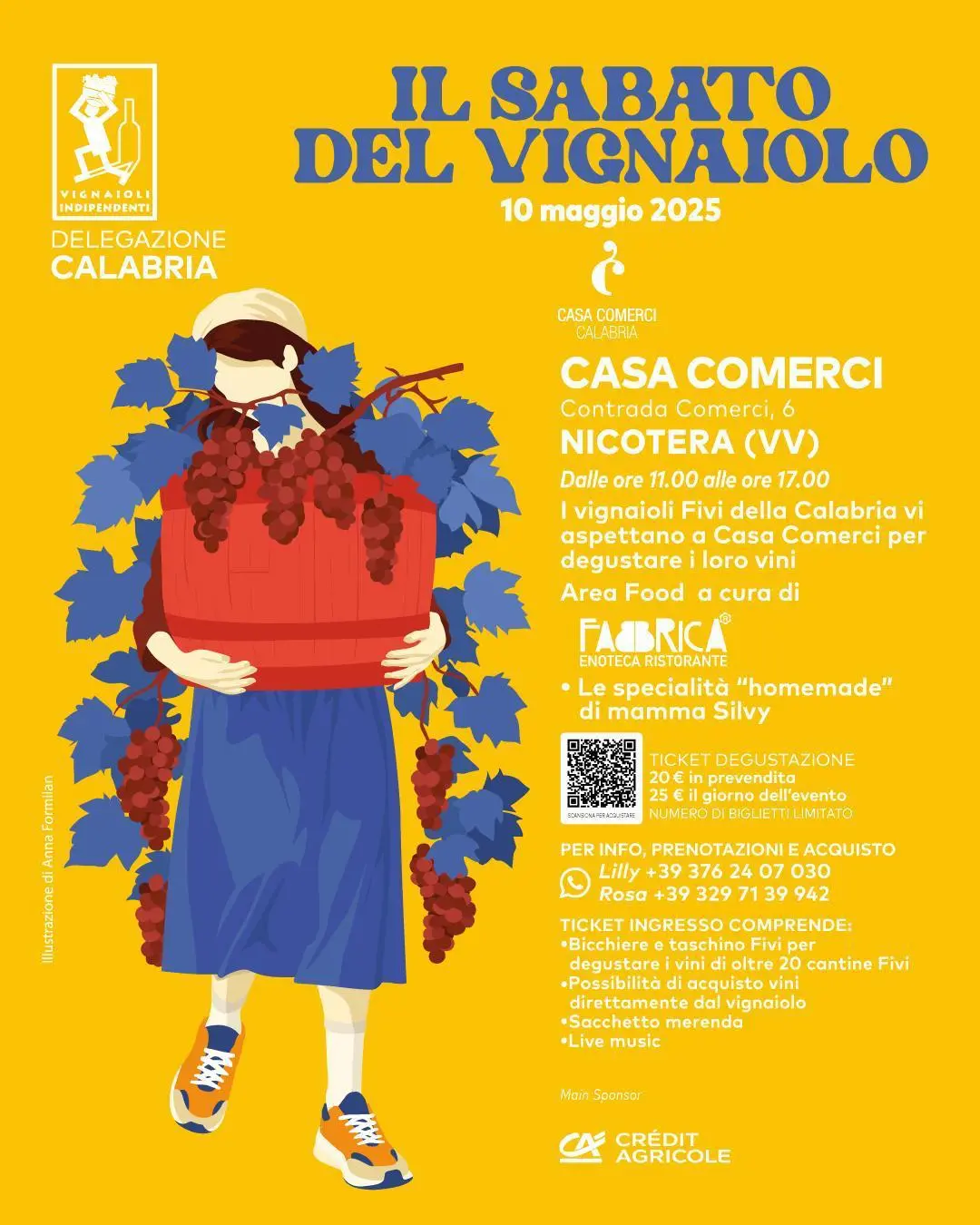 Sabato 10 maggio 2025, in tutta Italia, torna Il sabato del Vignaiolo, l’evento diffuso promosso dalla Federazione italiana vignaioli indipendenti (Fivi) per raccontare al pubblico e agli appassionati la ricchezza e la diversità delle realtà territoriali dei suoi soci. Una giornata in cui i vignaioli aprono le porte, si raccontano, si confrontano e condividono la propria visione di viticoltura: artigianale, sostenibile, profondamente legata alla terra. In Calabria, l’appuntamento sarà ospitato da Casa Comerci, dove la Delegazione Fivi regionale «ha scelto di celebrare il valore dell’indipendenza, dell’identità e della comunità tra le colline di Nicotera, accogliendo chi desidera conoscere non solo i vini, ma incontrare i volti e le mani che li rendono possibili: vignaioli che portano avanti ogni giorno un’idea di indipendenza, qualità e verità».