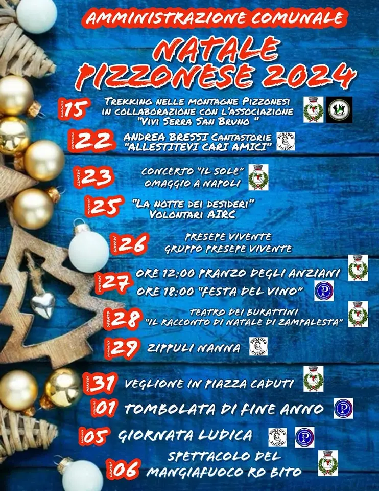 - 15 dicembre: Trekking nelle montagne pizzonesi in collaborazione con l’associazione “Vivi Serra San Bruno”;