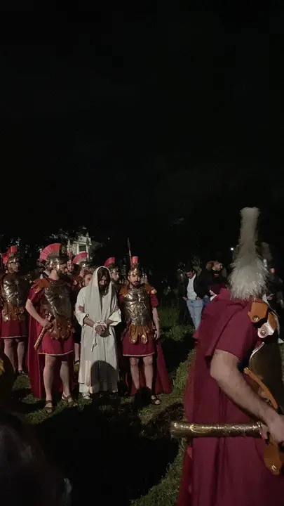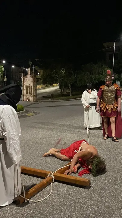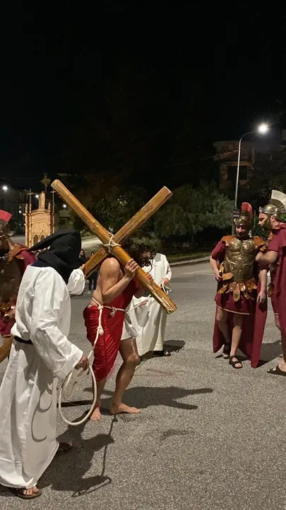 Volti tirati e incupiti, occhi lucidi e un turbinio di sentimenti. È stata particolarmente emozionante la rappresentazione della Passione di Cristo andata in scena ieri sera a San Calogero. Con un salto temporale di circa duemila anni e con l’ausilio di fedeli ricostruzioni scenografiche, il paese si è trasformato nell’abitato dell’antica città di Gerusalemme. Location suggestive e apprezzati costumi d’epoca hanno fatto il resto. Il ruolo più delicato della messa in scena, quello di Gesù Cristo, è stato impersonato da Francesco Maccarone, mentre tra le diverse interpretazioni hanno svettato quelle di Tonio Sibio e di Cinzia Mazzitelli nelle vesti, rispettivamente, di Ponzio Pilato e della Madonna.