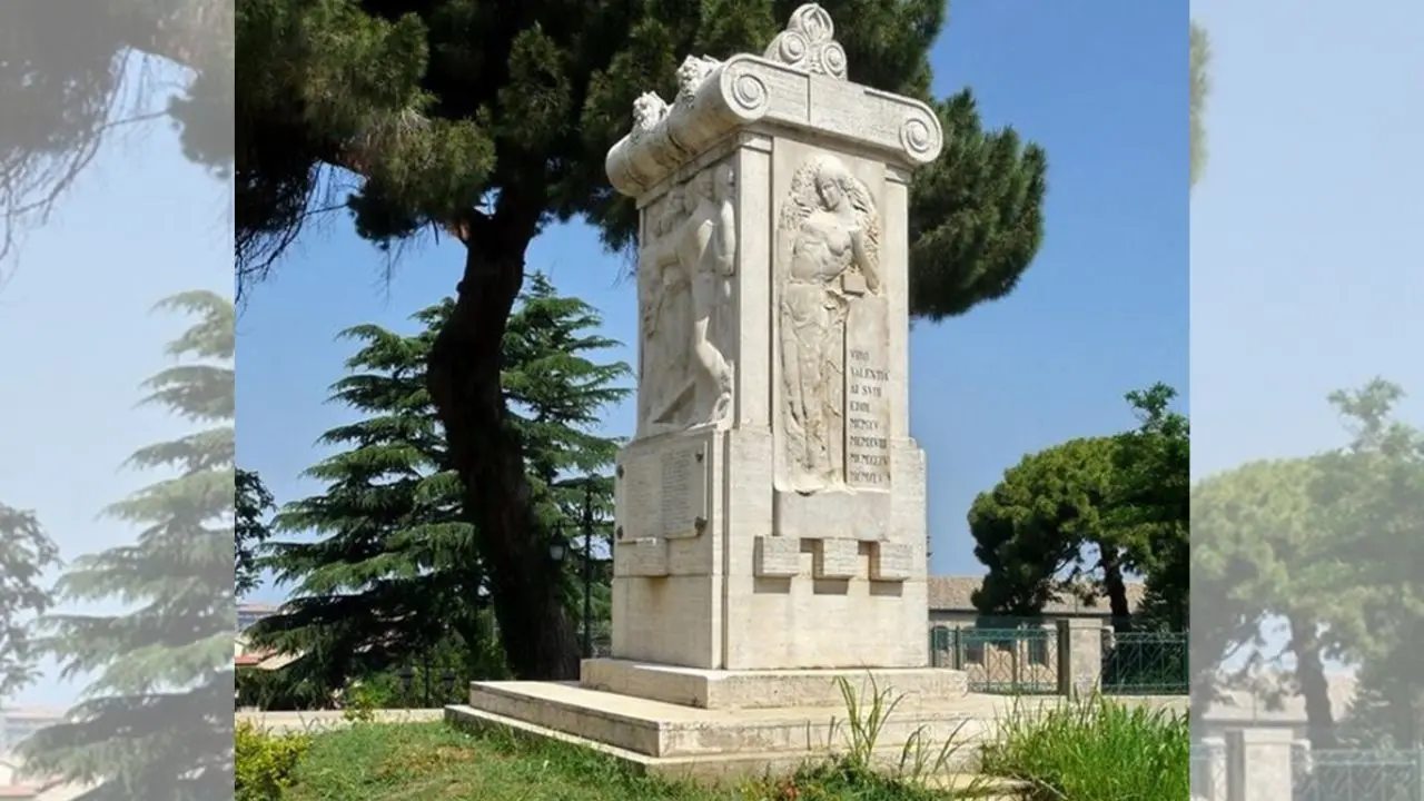 E’ formato da tre parti principali: voluta, stelo quadrilatero, basamento a due gradoni con una piccola aiuola sul davanti. Vi sono tre lastre in rilievo; la lastra centrale rappresenta una figura maschile, che è sia angelica che eroica, con sulle spalle una cornucopia che getta a cascata spighe e alloro. Venne inaugurato il 23 marzo 1938 con la benedizione di mons. Pietro Albera in presenza delle massime autorità politiche locali e di moltissimi cittadini, in quanto quel giorno, che cadeva di mercoledì, a Vibo si svolgeva il mercato agricolo.