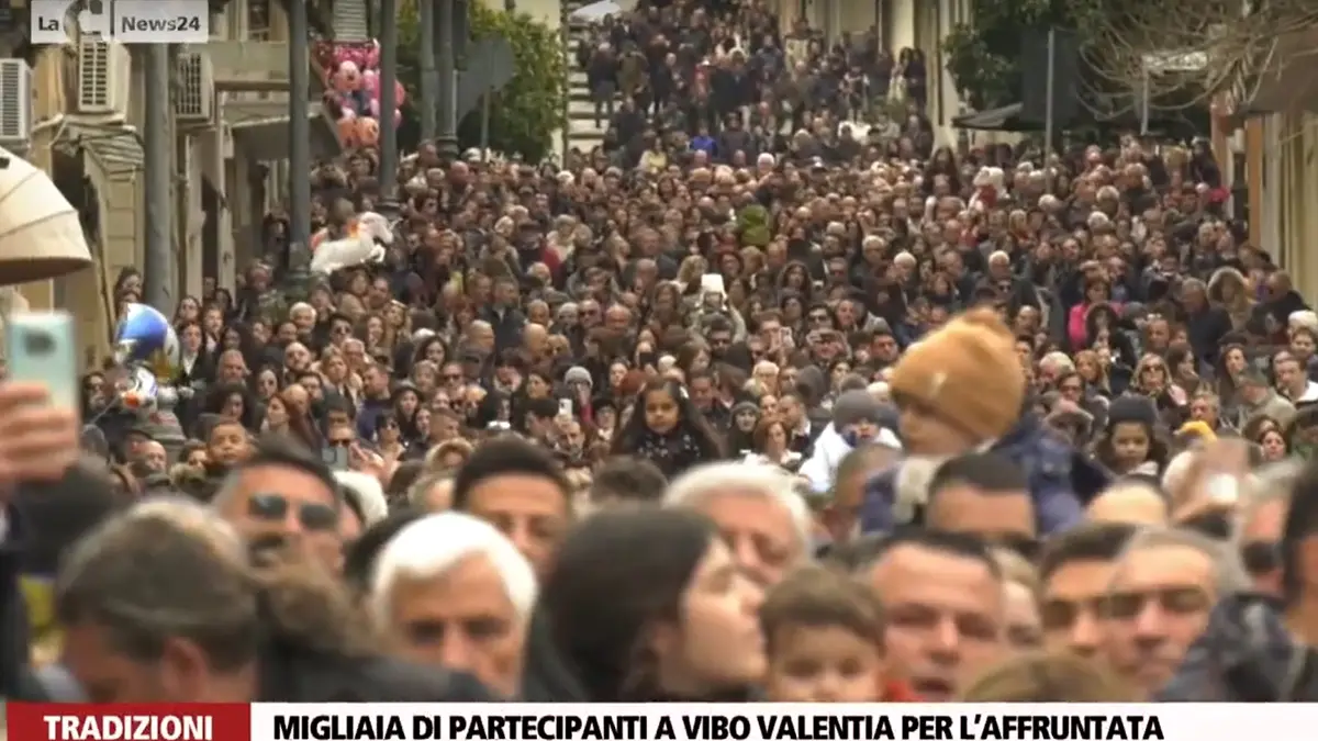 «Che questo entusiasmo e questa gioia permangano 365 giorni all’anno, e non solo il giorno di Pasqua, solo così diffonderemo pace intorno a noi, bellezza, gioia e verità», le parole di Mons. Filippo Ramondino sono un monito ma soprattutto un augurio alle migliaia di fedeli che ieri hanno invaso corso Vittorio Emanuele per partecipare all’Affruntata di Vibo Valentia. Il messaggio di Resurrezione, la corsa di San Giovanni, l’incontro tra la Madonna vestita a lutto e Gesù. Poi il velo nero che cade, l’urlo di giubilo, gli applausi commossi e le lacrime dei fedeli. Commozione e gioia, fatica e tensione. Un rituale sempre uguale ed ogni anno diverso, nuovo. Una tradizione portata avanti con passione ed emozione dall’Arciconfraternita del Rosario, sono loro l’anima di un evento che non smette di emozionare e che rappresenta la Rinascita della Pasqua che unisce tutti, credenti e non. [Continua in basso]