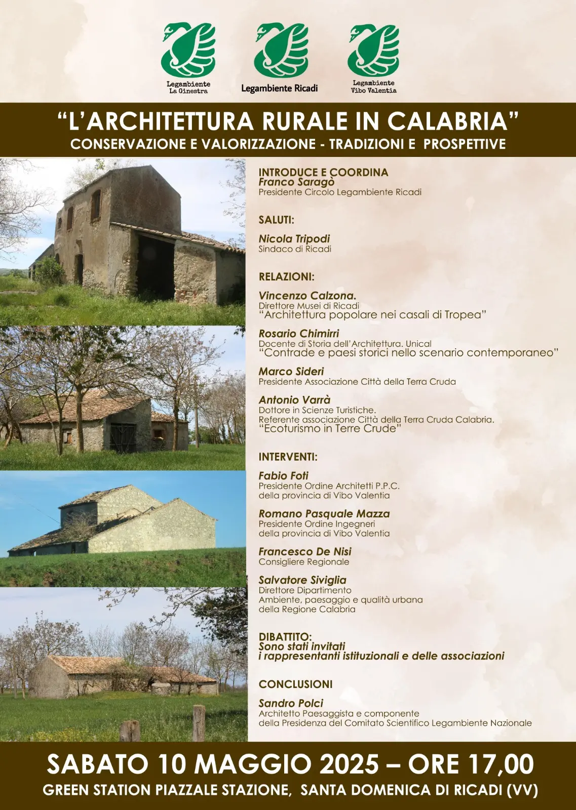 Un’importante riflessione sul valore, la conservazione e la valorizzazione dell’architettura rurale calabrese si terrà sabato 10 maggio, a partire dalle ore 17, alla Green Station del piazzale Stazione di Santa Domenica di Ricadi. L’evento, intitolato “Larchitettura rurale in Calabria: conservazione e valorizzazione, tradizioni e prospettive”, si preannuncia come un’occasione cruciale per discutere il futuro di un patrimonio culturale e paesaggistico unico. La giornata sarà introdotta e coordinata da Franco Saragò, presidente del Circolo Legambiente Ricadi, figura centrale nell’organizzazione dell’iniziativa. I saluti istituzionali saranno portati da Nicola Tripodi, sindaco di Ricadi, sottolineando l’importanza che l’amministrazione locale attribuisce al tema.