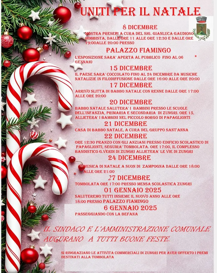 L’esposizione sarà aperta al pubblico fino al 6 gennaio: «I presepi sono stati realizzati perlopiù con polistirolo e cemento. Per l’allestimento ho impiegato circa due giorni. È stata per me una bella soddisfazione osservare i riscontri positivi di pubblico. La comunità ha apprezzato e speriamo che la mostra possa continuare a richiamare presenze». Con l’esposizione a palazzo Fiamingo, infatti, la cittadina del Poro si dota di un ulteriore elemento attrattivo. Oltre all’Insediamento rupestre e annesso Museo, alle porte dipinte che animano il centro storico, al muro dei proverbi, alla bellezza del Santuario dedicato alla Madonna della Neve, i visitatori potranno ammirare le creazioni dell’artista locale. E non solo. Diverse le iniziative ideate dalla compagine amministrativa in sinergia con le associazioni per allietare le festività. Tra gli appuntamenti imperdibili, nel pomeriggio del 17 dicembre, l’arrivo di Babbo Natale con la slitta. Il 21 dicembre, poi, spazio alla Casa di Babbo Natale, realizzata dal gruppo Sant’Anna. A chiudere gli eventi natalizi, il 6 gennaio l’evento “passeggiata con la Befana”.