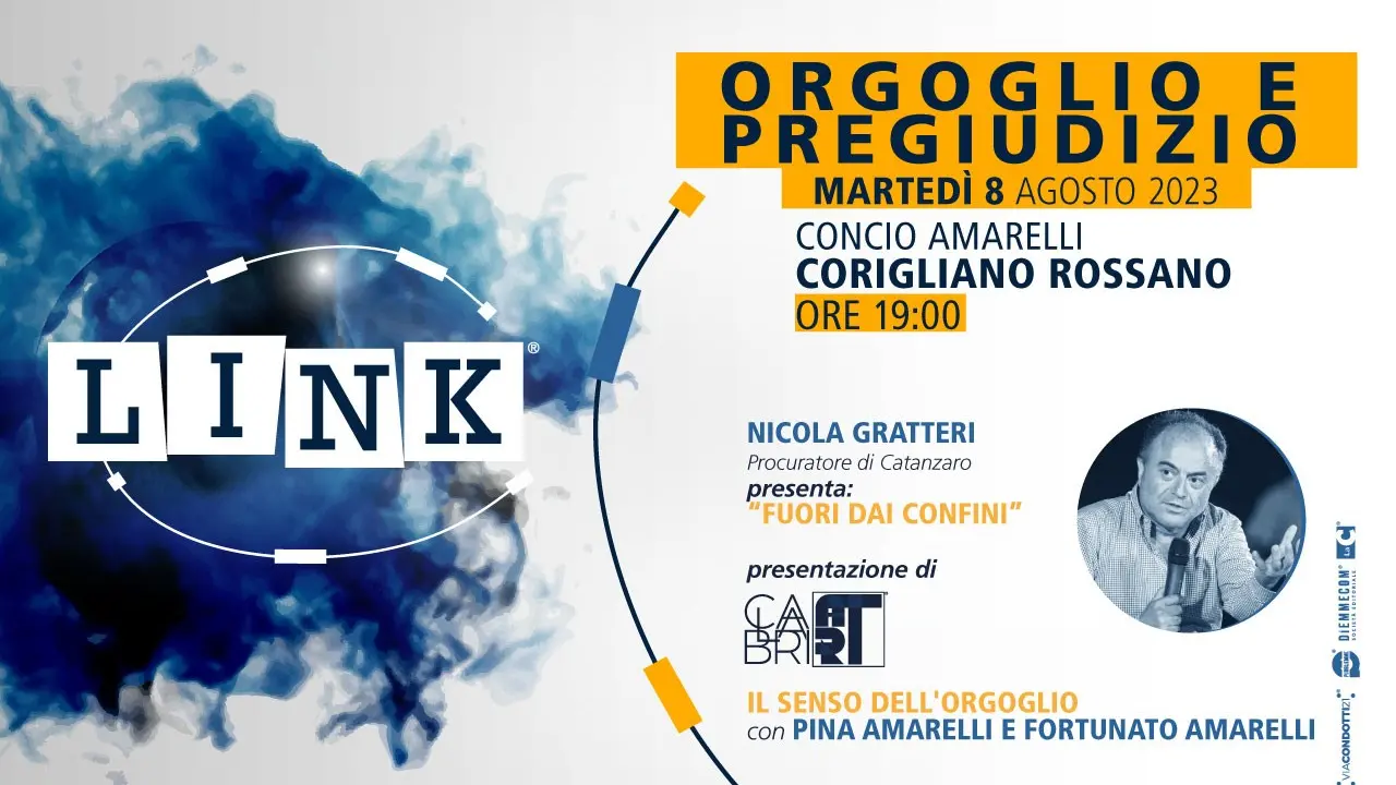 Sold out. La terza e ultima tappa di Link – Orgoglio e Pregiudizio, l’importante progetto di viaCondotti21, Pubbliemme, Diemmecom, LaC network, che si terrà a Corigliano Rossano questa sarà a partire dalle ore 19 al Concio Amarelli, farà registrare il tutto esaurito, come lasciano presagire le prime due tappe che si sono già tenute a Falerna e Vibo Marina nei giorni scorsi, e hanno visto la partecipazione di tante persone. Anche la terza città della Calabria, dunque, parteciperà con passione. Vi è grande attesa e voglia di raccogliere i messaggi sempre più pop lanciati dal procuratore di Catanzaro, Nicola Gratteri, di proteggere l’eredità di legalità e rinnovamento che Link – Orgoglio e pregiudizio vuole lasciare alla Calabria, nella direzione indicata dal presidente di Diemmecom, Domenico Maduli: «L’orgoglio condiviso ci rende più forti. Condividere serve a prendere coscienza in modo inequivocabile di quanto sia efficace compiere ciò che è alla base della comunicazione strategica: trasformare i punti di debolezza in punti di forza» CONTINUA A LEGGERE QUI: Corigliano Rossano si prepara ad accogliere Gratteri ospite dell’evento targato LaC che promuove il riscatto della Calabria all’insegna della legalità