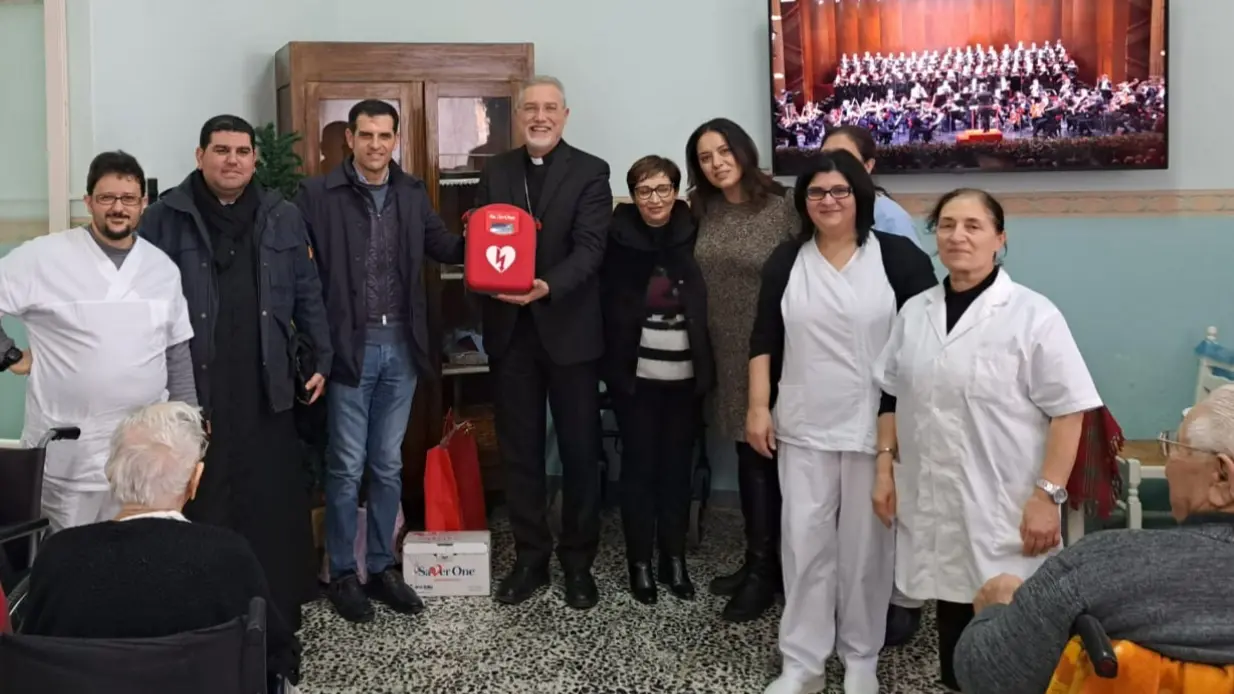 Bel gesto compiuto da un gruppo di cittadini miletesi nei confronti e a favore del centro residenziale per anziani “Casa Serena”. La struttura, di pertinenza della diocesi di Mileto-Nicotera-Tropea, ospita attualmente ventidue nonnini e nonnine. Alcuni abitanti della cittadina normanna, saputo che la casa ubicata nei pressi della basilica cattedrale non era dotata di un defibrillatore, hanno nelle scorse settimane pensato bene di dare vita a una raccolta fondi per permettere di comprarne uno, fondamentale in caso di anziani vittime di arresto cardiaco. Da qui all’acquisto di un defibrillatore semiautomatico, modello saver one, completo di batteria, piastre adulti e borsa trasporto, il passo è stato breve, complice anche il clima prettamente natalizio. Alla cerimonia di consegna dello strumento medico sono stati presenti, tra gli altri, il vescovo, monsignor Attilio Nostro, don Nicola Scordamaglia, il diacono e responsabile del personale, Piero Vangeli, e altri operatori di “Casa Serena”. [Continua in basso]