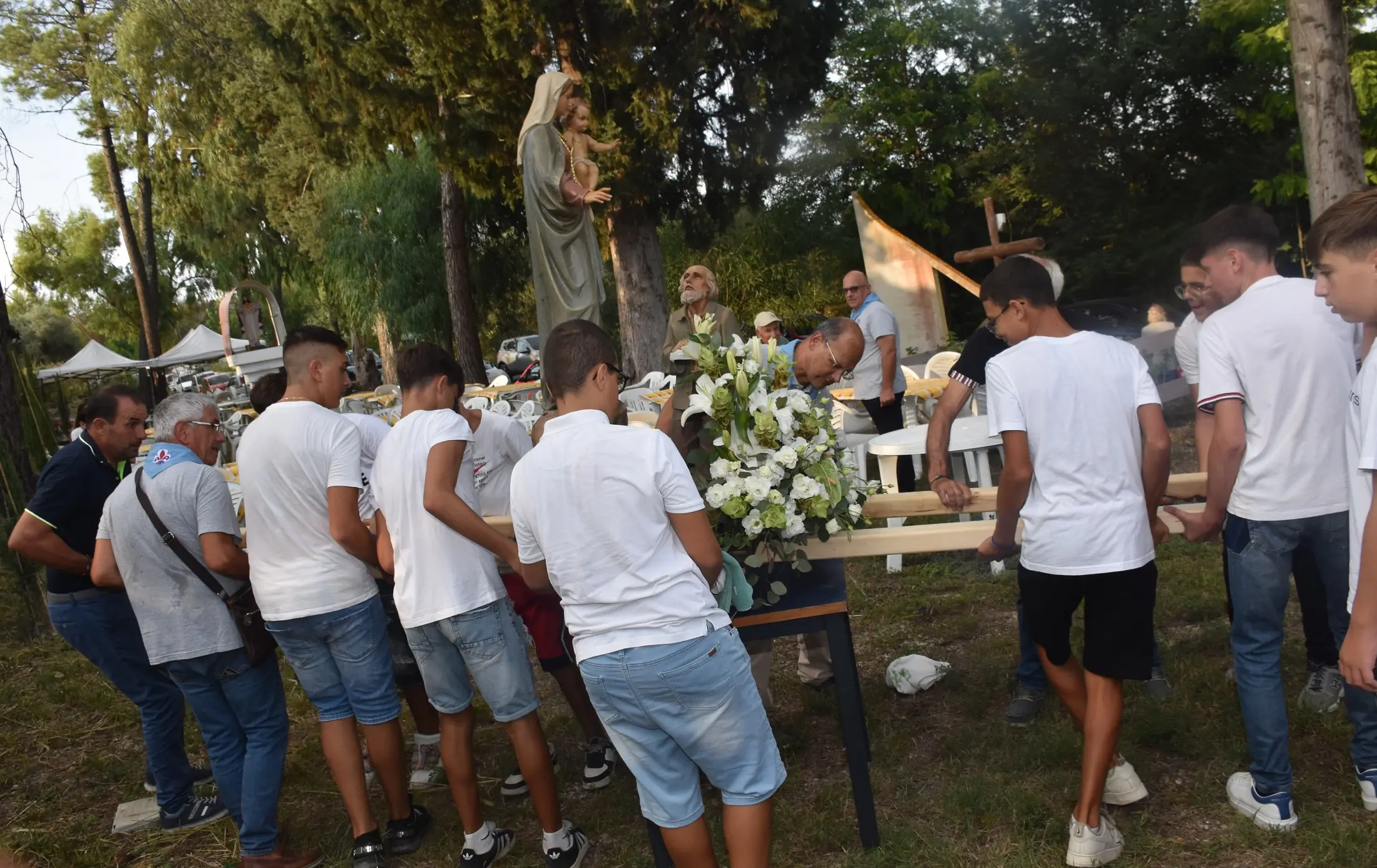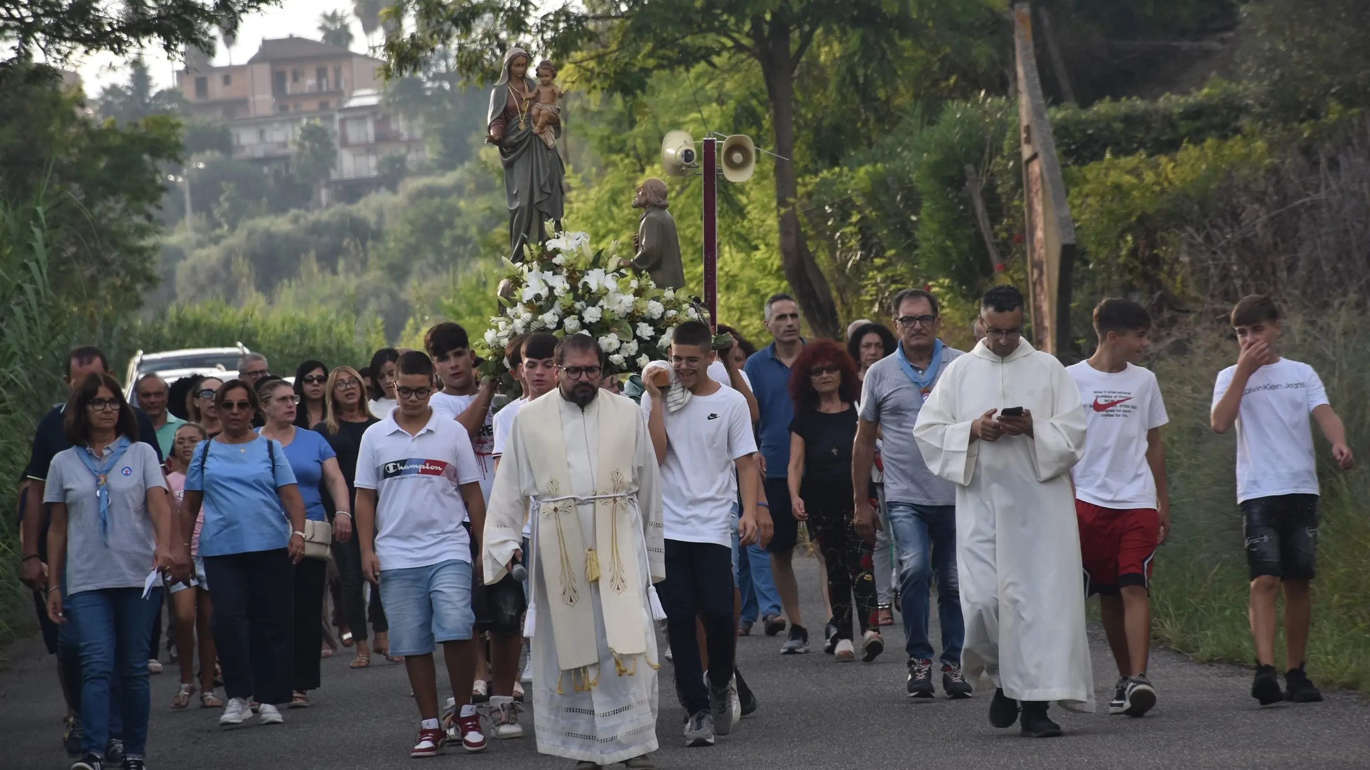 Grande partecipazione di fedeli all’annuale festa della Madonna della Guardia, proposta a Mileto dal gruppo volontari “La Madonneda” in collaborazione con il locale circolo “Laudato sì” e la comunità Masci (Movimento adulti scout cattolici italiani) Mileto 1. L’evento ha preso il via con una solenne processione della statua della Madonna della Guardia che dal santuario di Maria Santissima della Cattolica ha avuto come destinazione finale l’ingresso del parco archeologico medievale di Mileto antica intitolato al vescovo Antonio Maria De Lorenzo. Nei suoi pressi, infatti, dal 1971 è situata la cappella dedicata proprio alla Madonna della Guardia, voluta dalle maestranze liguri di una ditta che in quei frangenti aveva realizzato la linea binaria della vicina ferrovia. Un atto di gratitudine nei confronti della popolazione e di profonda devozione mariana, portato a compimento su progetto del compianto professore Giuseppe Occhiato e in collaborazione con altre valenti personalità dell’epoca, su terreno concesso in voto per una grazia ottenuta da Annunziata Currà.