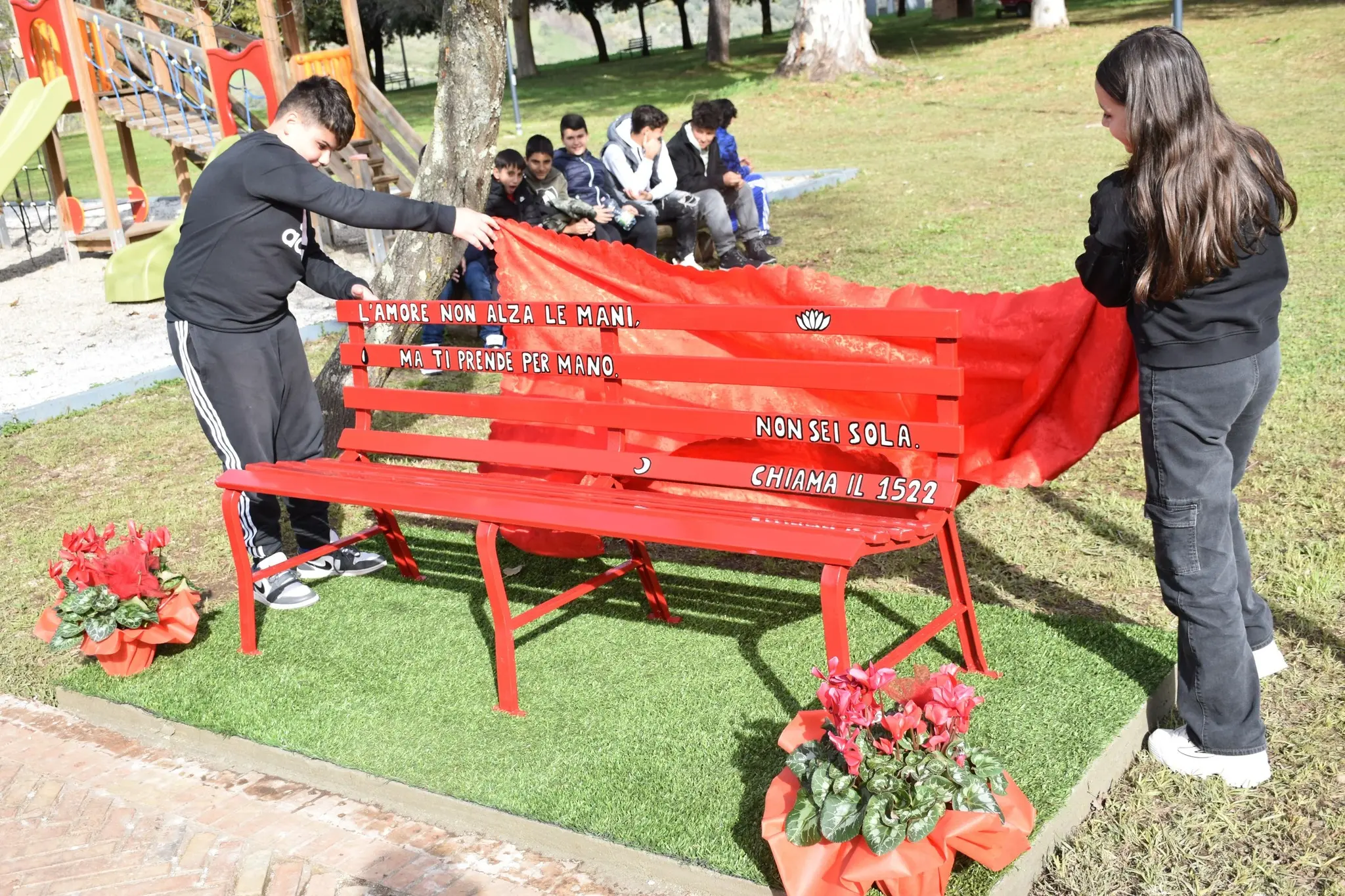 Manifestazione ricca di significati, quella vissuta nella mattinata di oggi a Mileto nell’ambito dell’annuale Giornata internazionale per l’eliminazione della violenza contro le donne. Nell’occasione all’interno del Parco urbano Nicholas Green è stata installata una panchina rossa appositamente personalizzata dal giovane pittore Fortunato Pedullà, simbolo di denuncia e sensibilizzazione e del posto vuoto lasciato da una donna che non c'è più, vittima del femminicidio. Un momento di forte impatto emotivo che ha visto la presenza di numerose autorità locali e degli studenti dell’Itc e della scuola media cittadina.